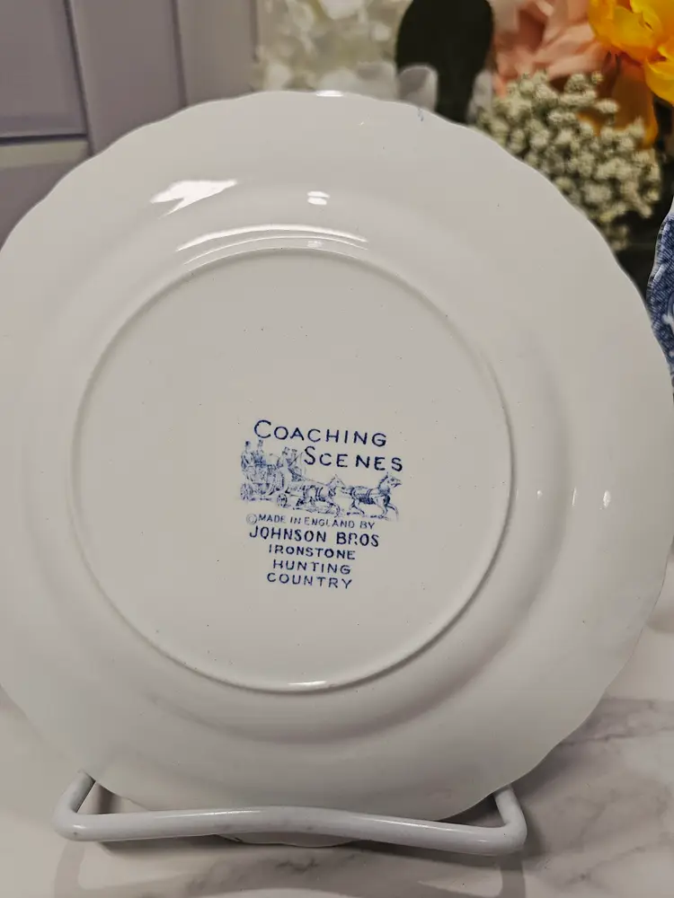 Made by: Johnson Brothers Pattern: Coaching Scenes Blue (Discontinued) Place of Origin: England Type of China: Set of 6 Bread & Butter Plates Measurement: Diameter: 6 1/4 in Markings: SEE PIC Condition: Used SOLD AS IS NO RETURNS SKU:260829