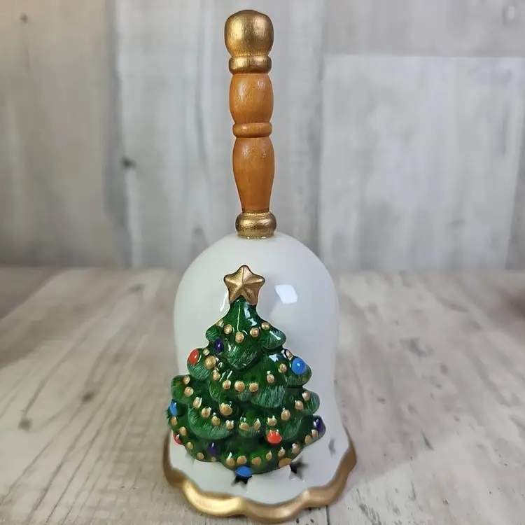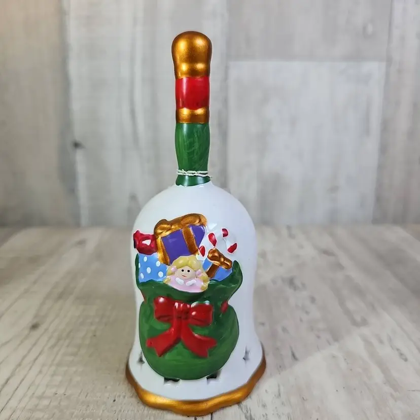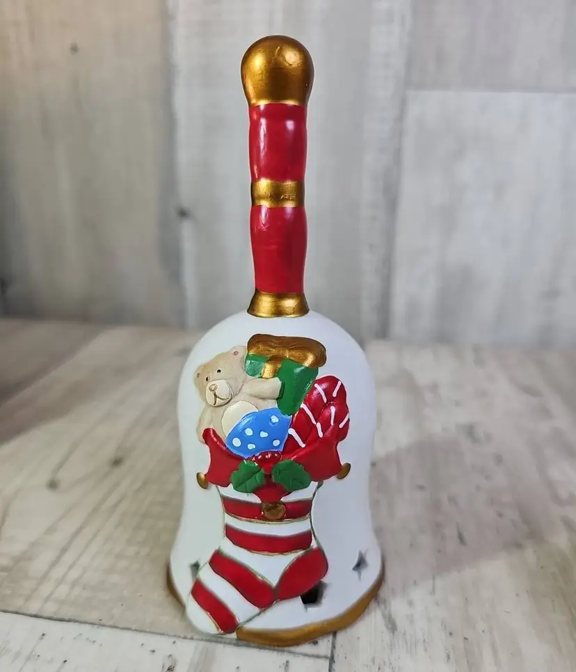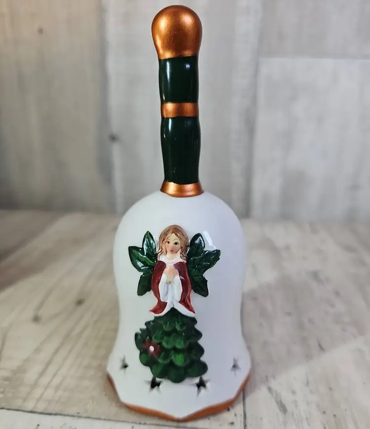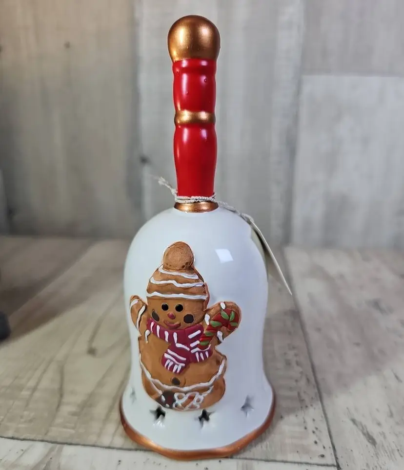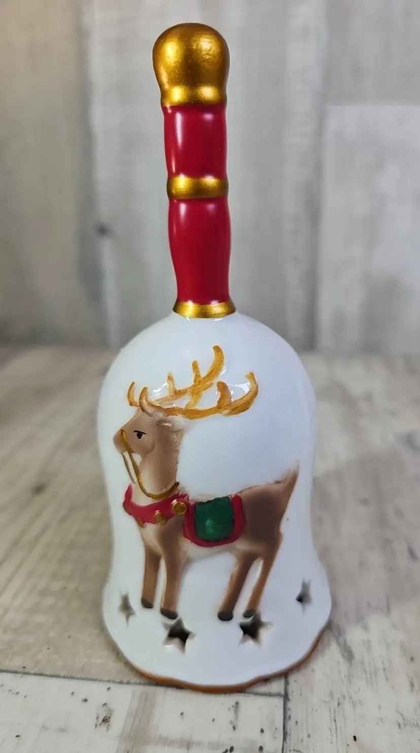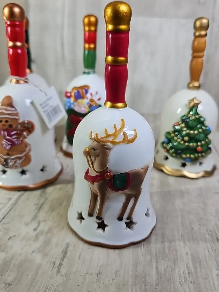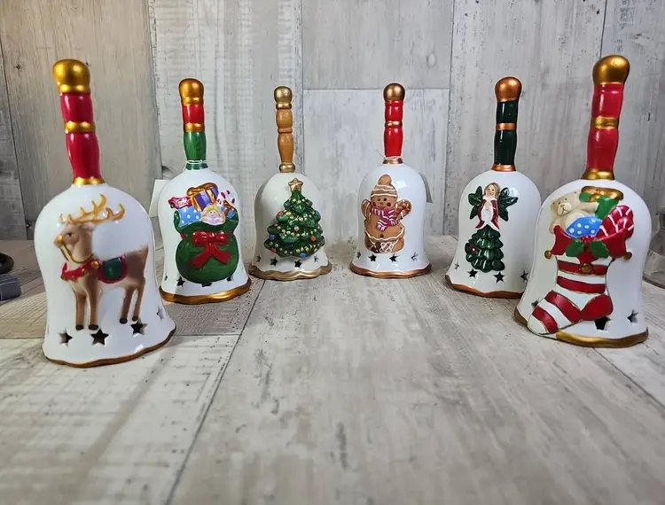 Bring festive cheer to your home with this set of six ceramic Christmas bells. Each bell is hand-painted with a classic holiday design – including reindeer, stocking, tree, gingerbread, angel, and Santa’s toy bag.