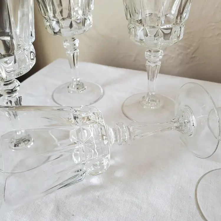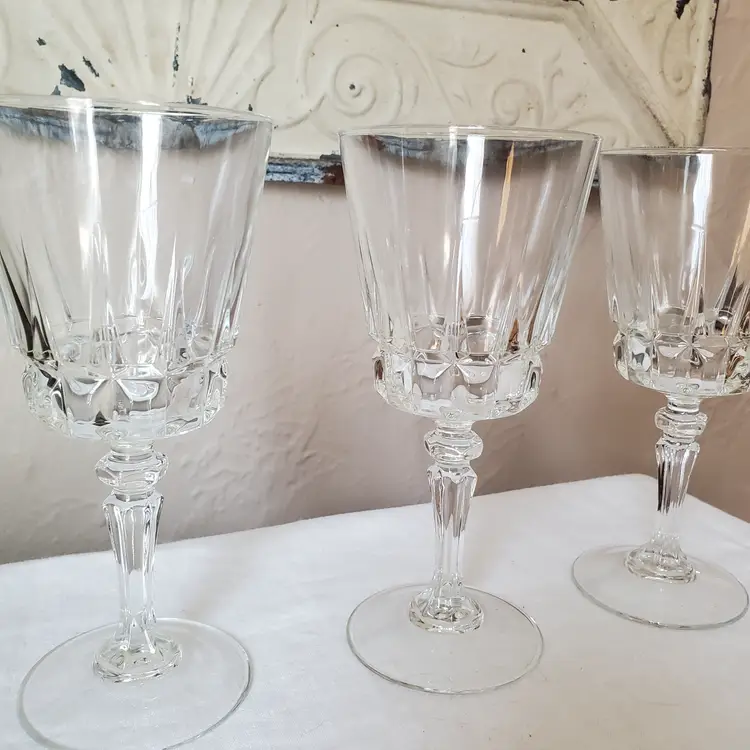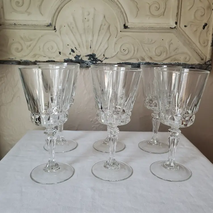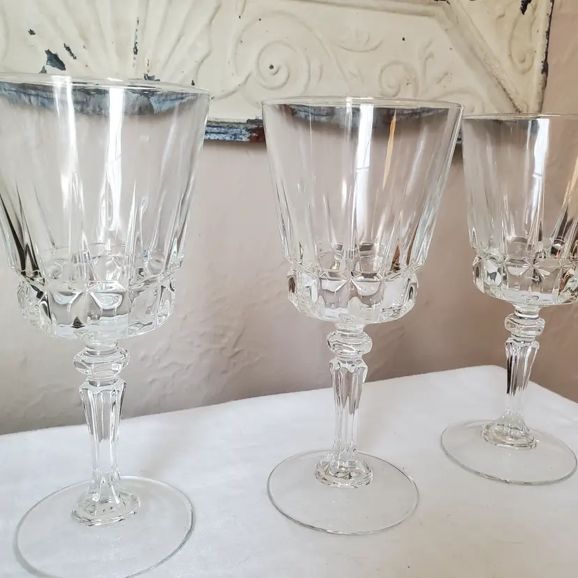Lovely set of 6 Cristal D'Arques Durand Chantelle Wine Glasses. 6 1/8", 2 7/8" diameter rim. In excellent condition with no chips.