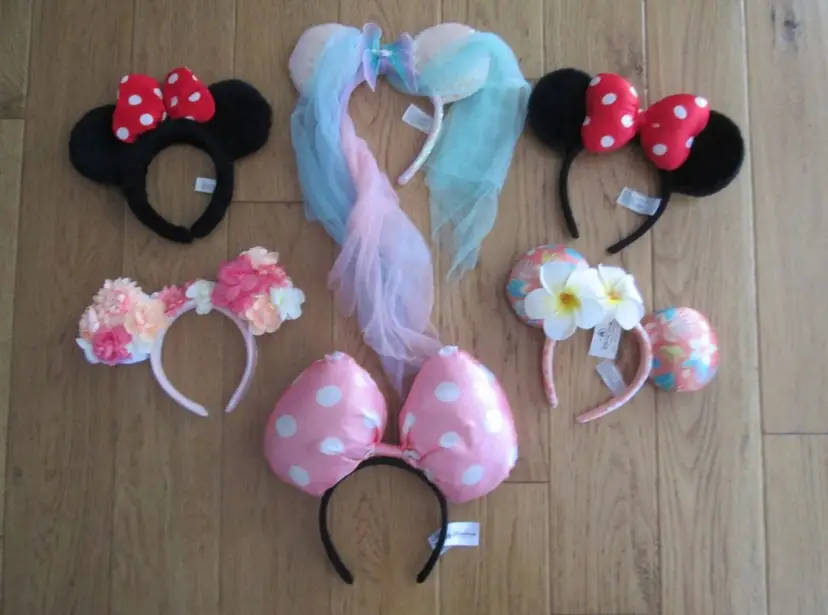 Set of 6 collectible Disney Parks Minnie Mouse headbands. These were designed for tweens to adults to collect and wear in the Disney parks.