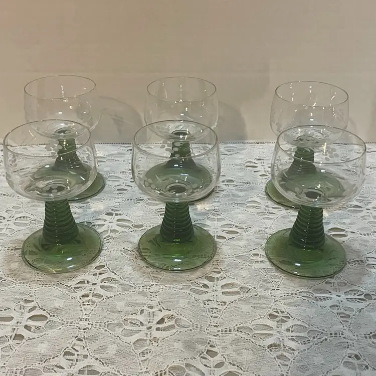 Beautiful set of 6 green stemmed glasses. Perfect for any occasion.
