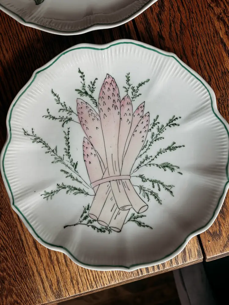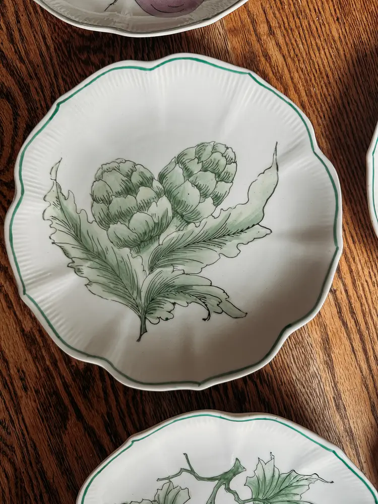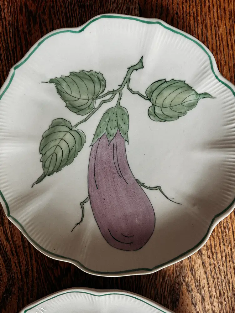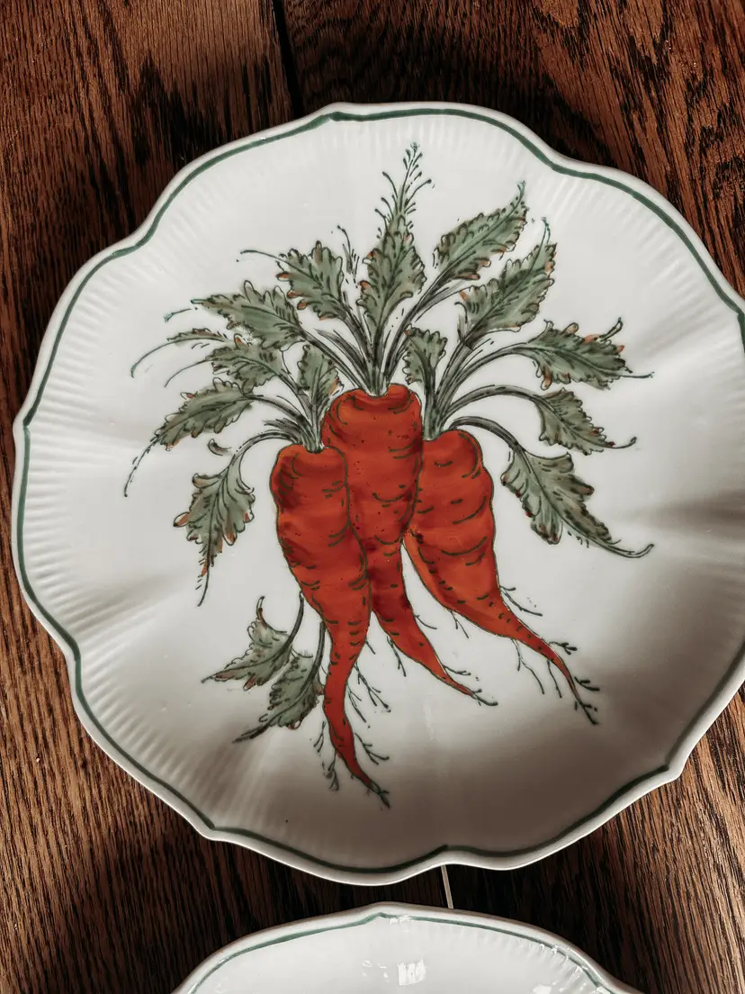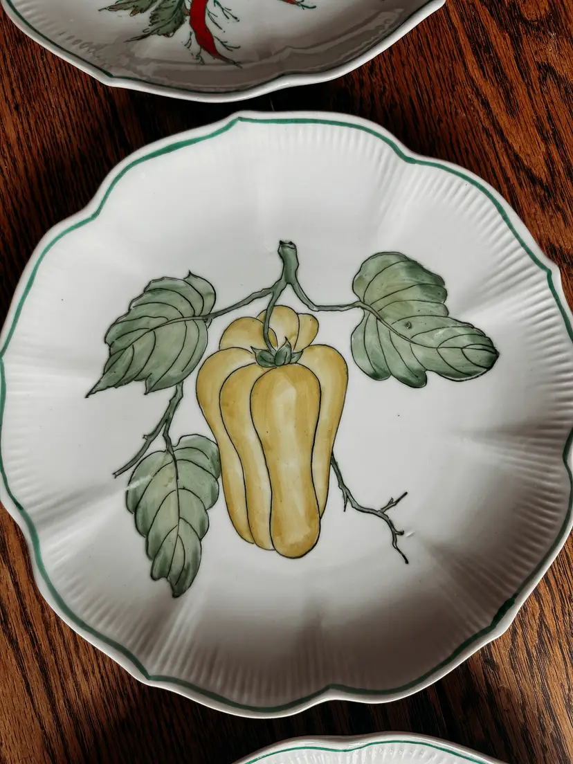 I can't find another set of plates like this on the internet and when I saw them my jaw dropped! They are in pristine condition and would make an incredible addition to any home! They state that they are not food safe, but these beauties could be used as part of a hanging gallery or display on a tabletop. This collection is truly stunning from the vegetable designs themselves to the colors used!