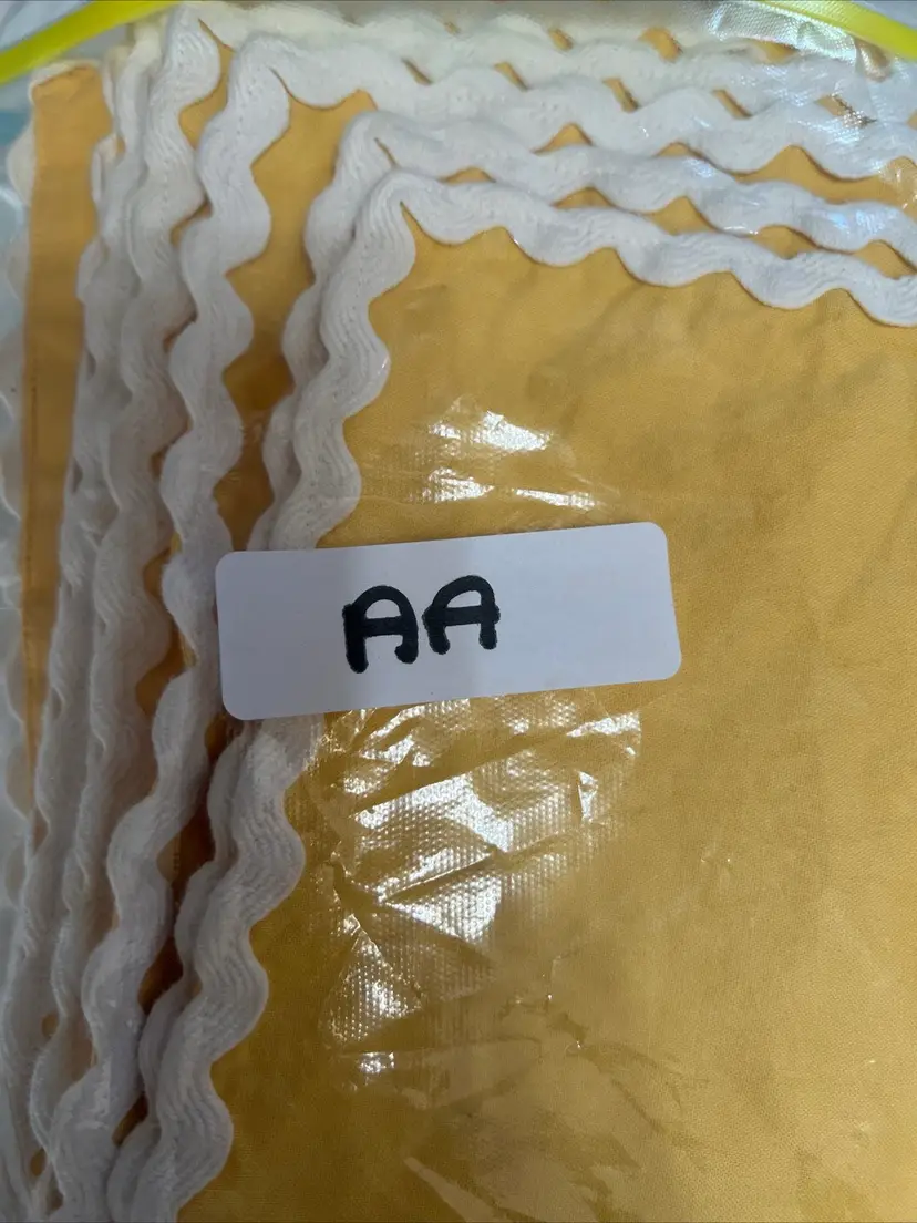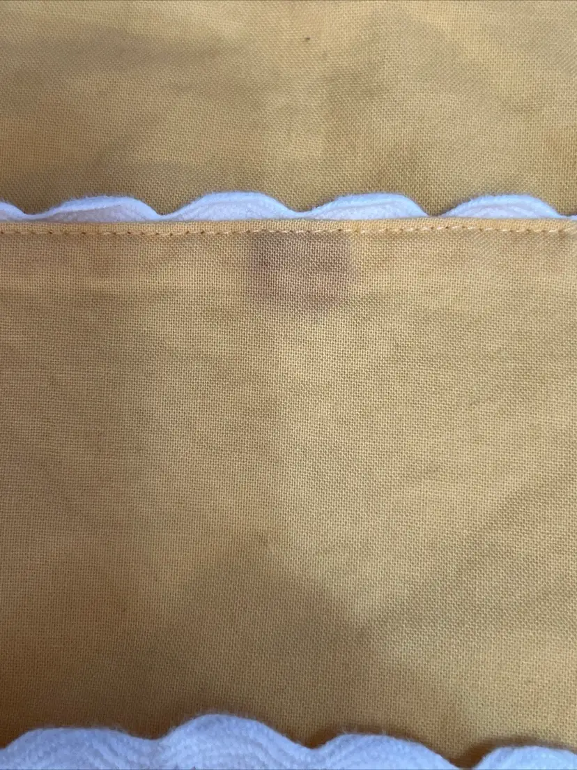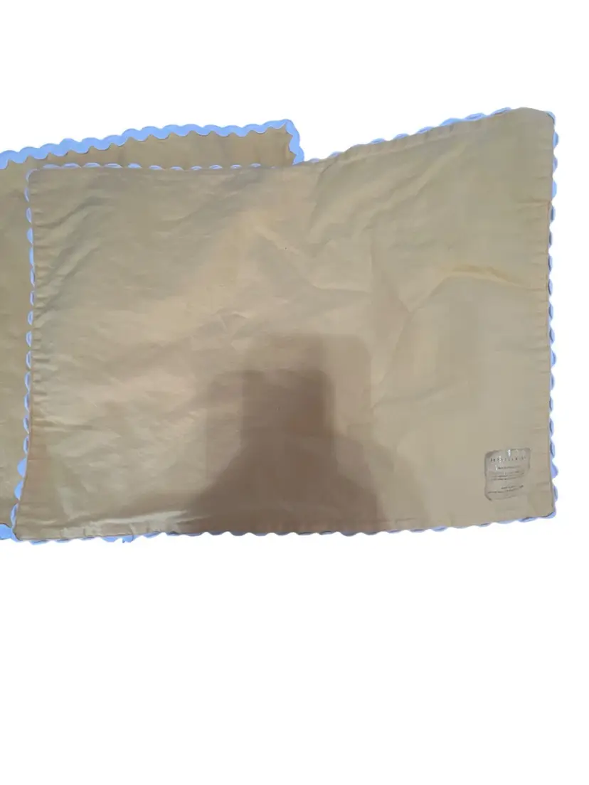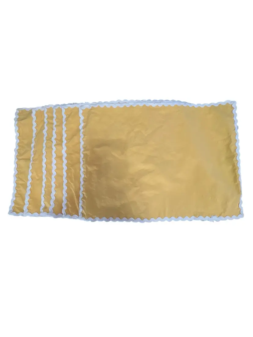 Add a touch of vintage charm to your dining table with this set of six Pottery Barn placemats. The bright yellow color and white trim create a cheerful and classic look that will complement any table setting. Made from high-quality cotton, these mats are both durable and easy to clean. Each mat measures 18 inches in length and 13 inches in width, making them perfect for any dining table or kitchen countertop. Use them to protect your table and make your meals more enjoyable.