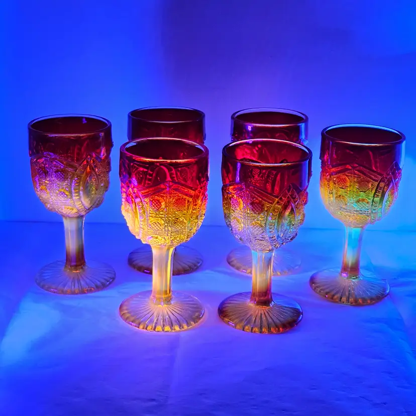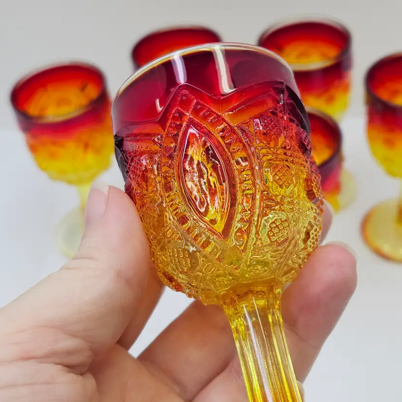 Viking amberina glass goblets, set of 6, 4", NO damage.
