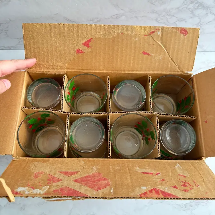 Box is worn but still functional. Glasses are in excellent vintage condition.