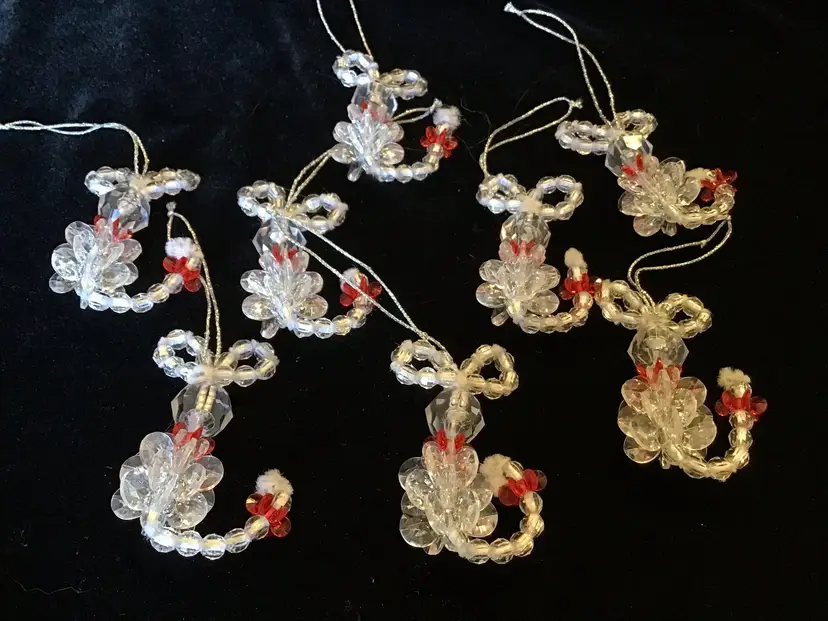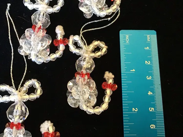 These little cat ornaments are made from plastic beads and measure approximately 1 1/2 inch wide by 2 inches tall. All in excellent condition. Pictures are complete description, measurements and condition.