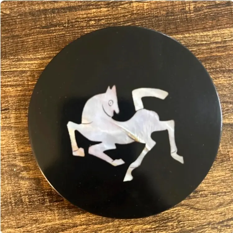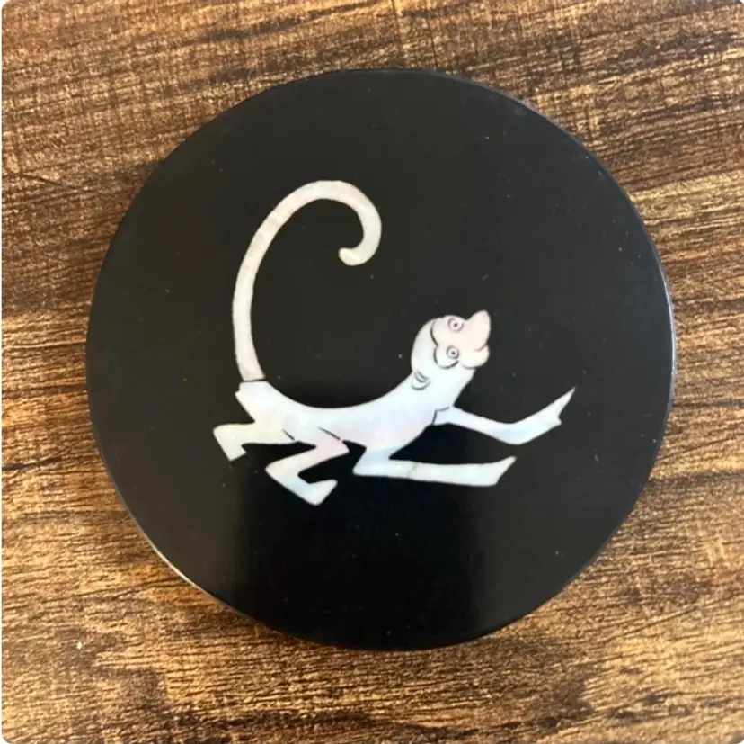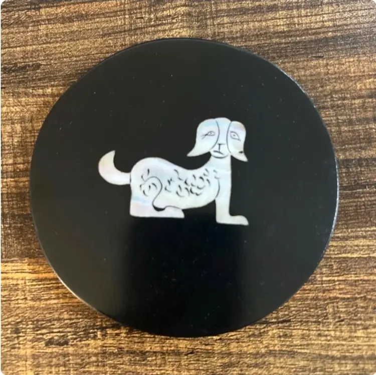 Set of Black Lacquer Coasters w/ Mother of Pearl Inlay Animals Chinese Zodiac
