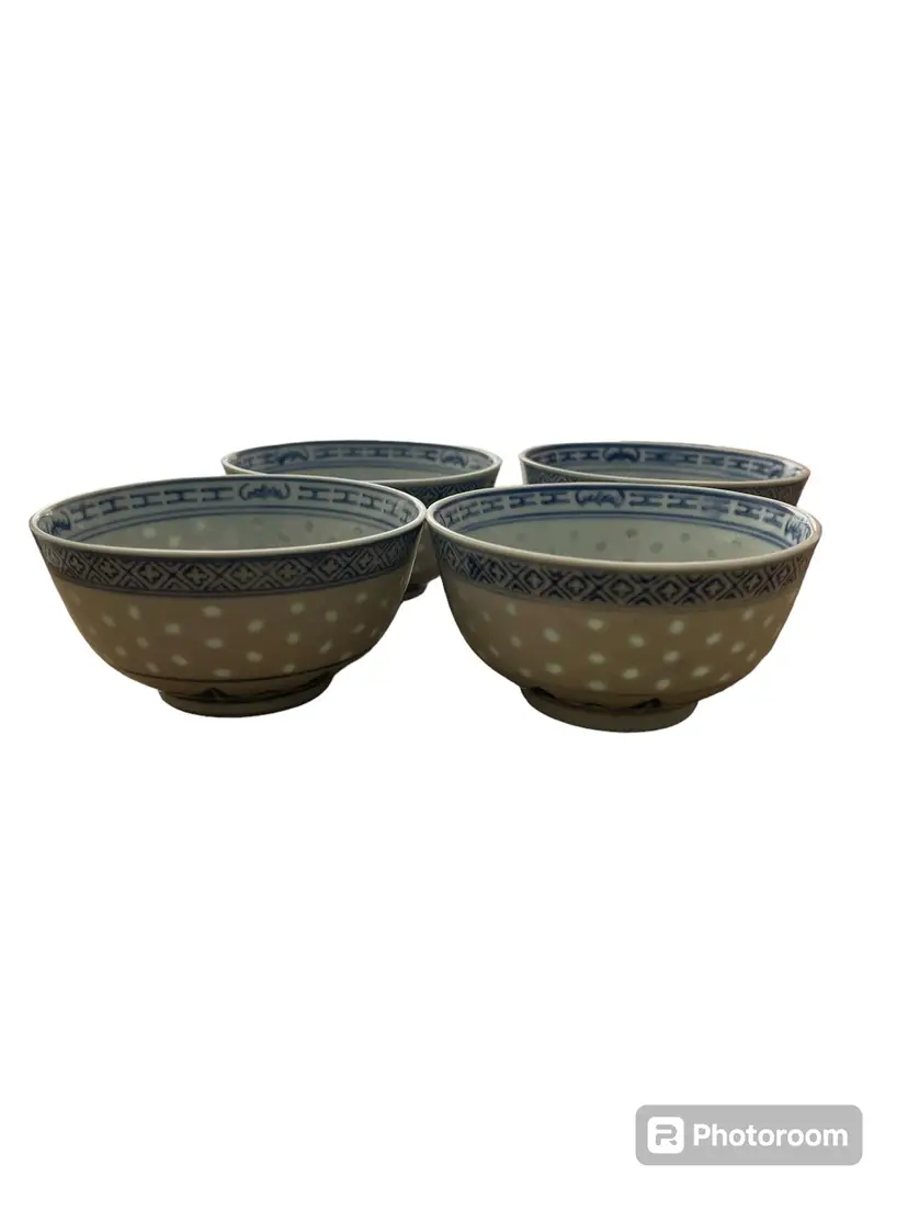 Enhance your collection with these exquisite blue and white bowls with a striking rice eye design. The intricate pattern on these Chinese collectibles is a testament to their cultural significance. Perfect for adding an Asian touch to your home decor, these plates are a great addition to any collection. Made with high-quality materials, these bowls are sure to impress your guests.