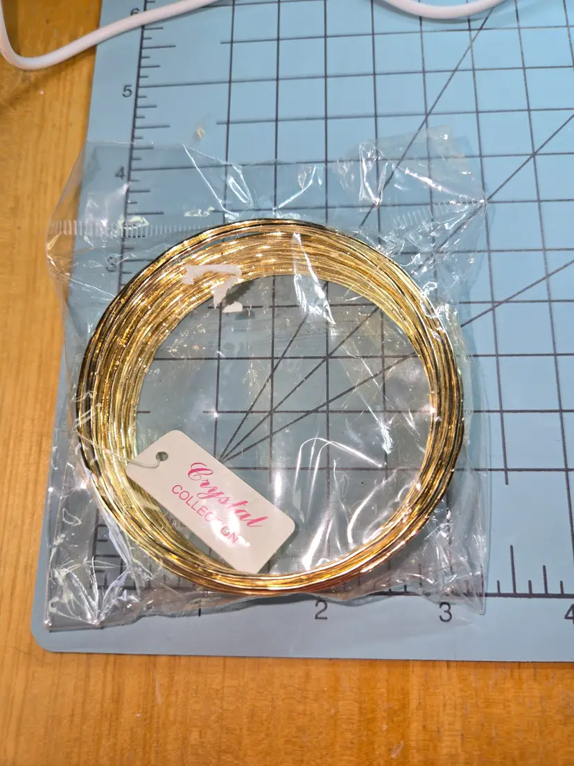 Crystal Collection set of 12 gold tone 3 in bangle bracelets, new in package. Unknown materials.