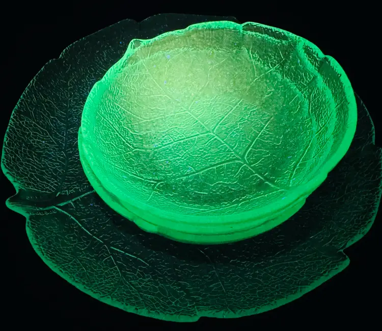 Beautiful blue glass that glows ✨ to a bright green under UV.