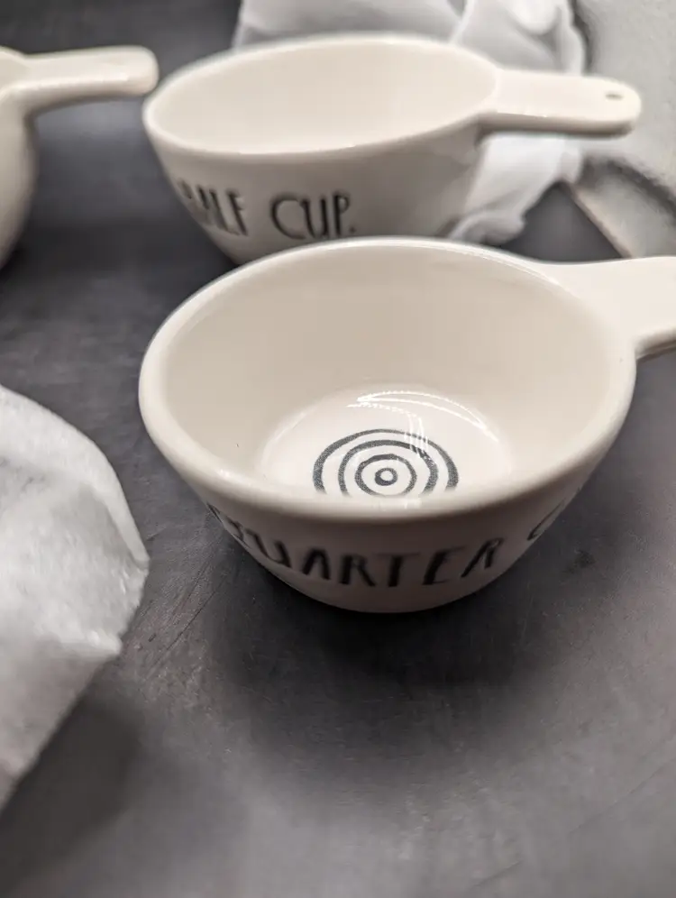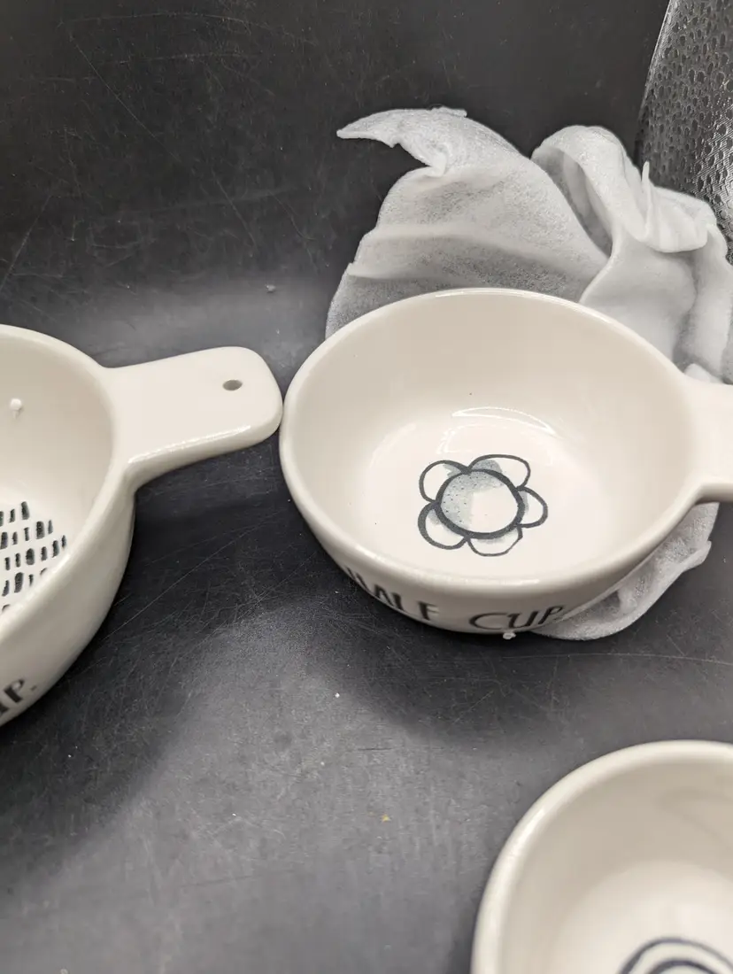 This is a lovely Set of Rae Dunn Ceramic Measuring Cups Brand New. Please see all pictures for condition and measurements.