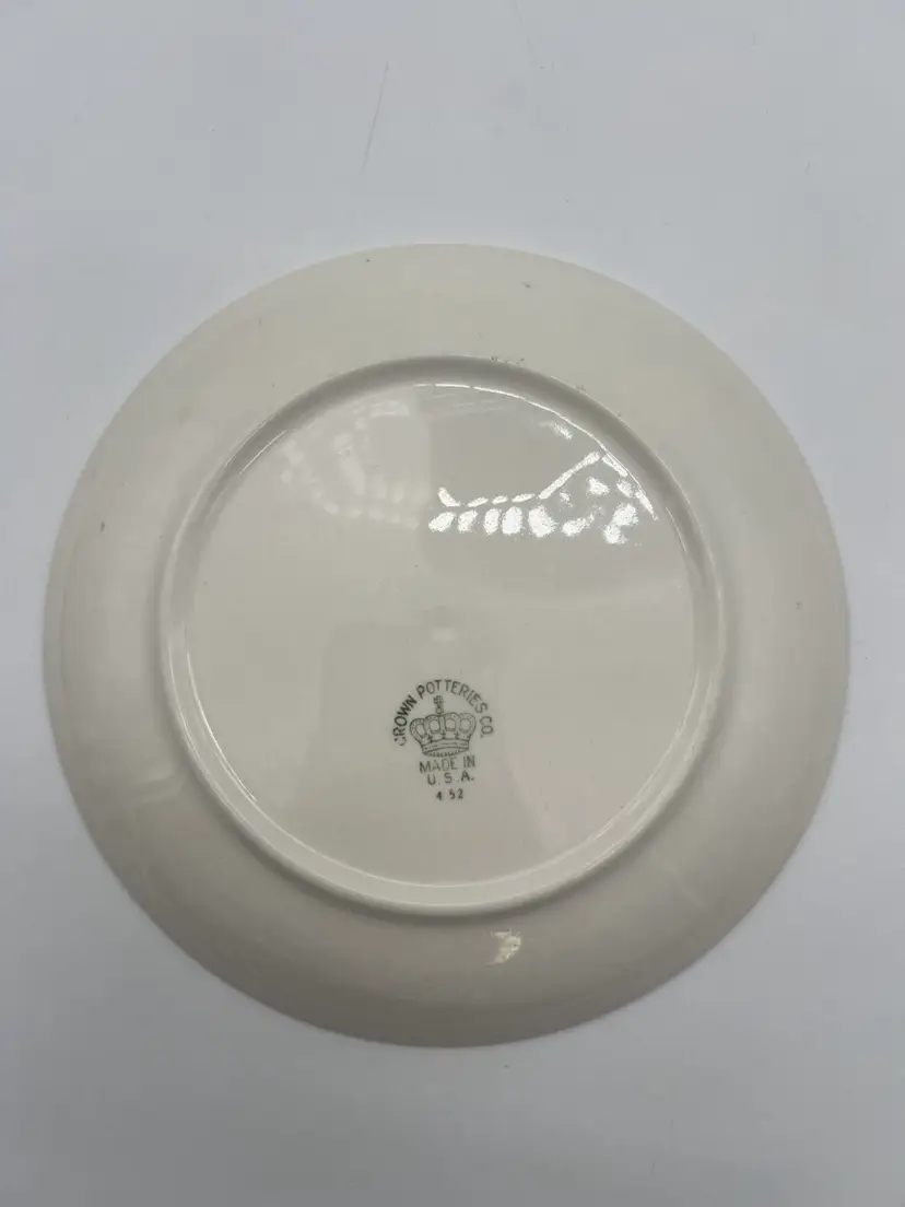 Measures approximately 7” in diameter. Stamped Crown Potteries Inc Made in USA 452
