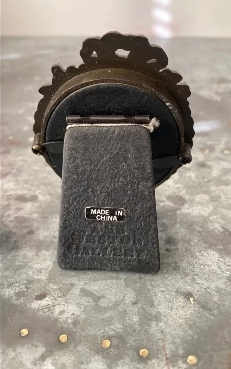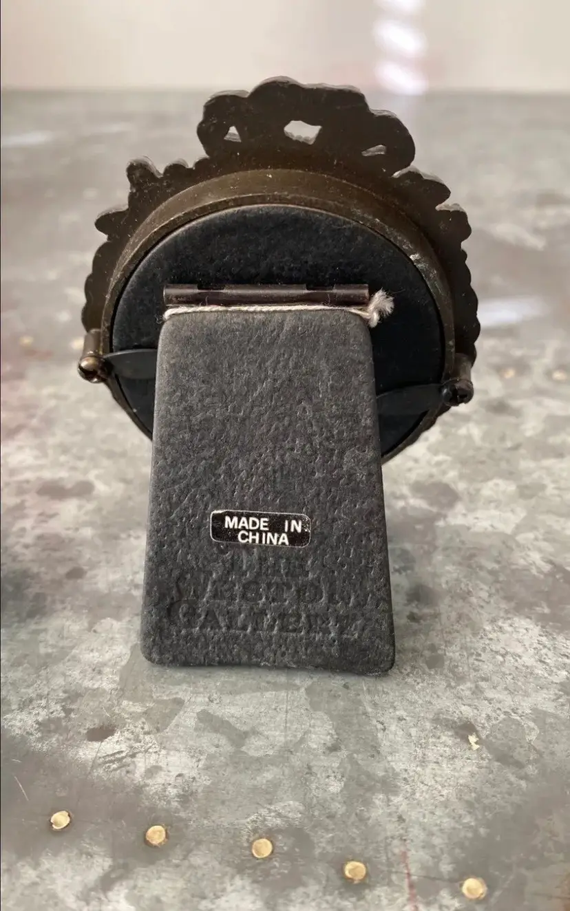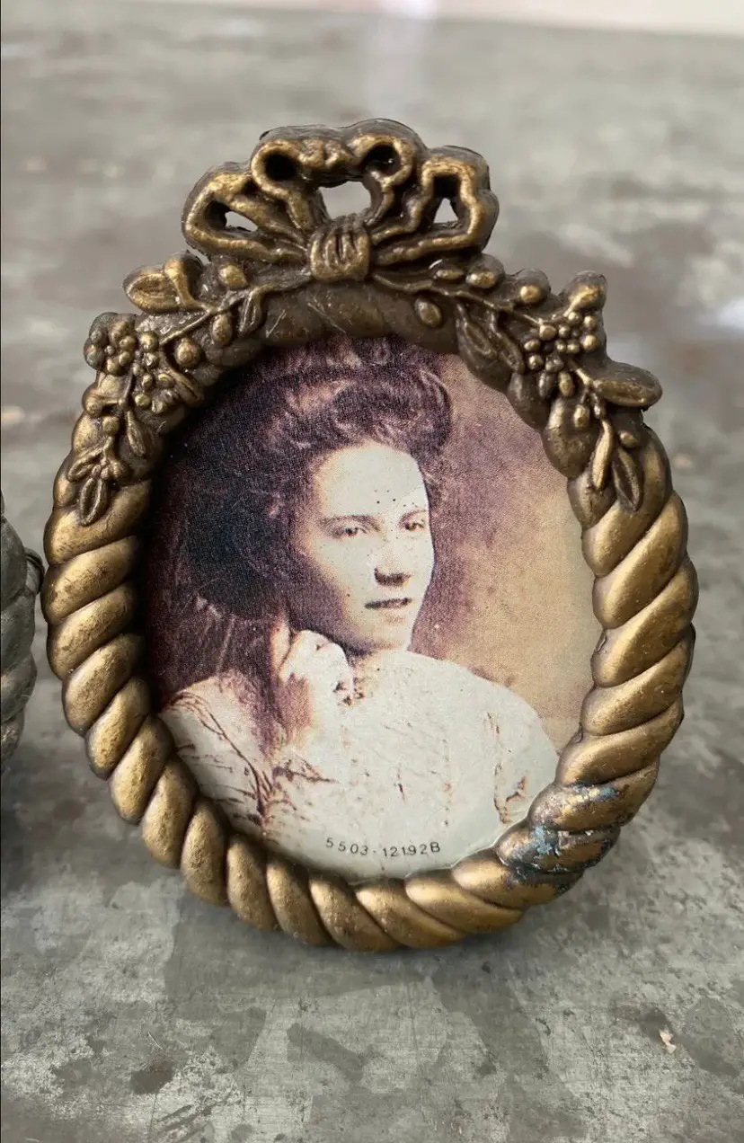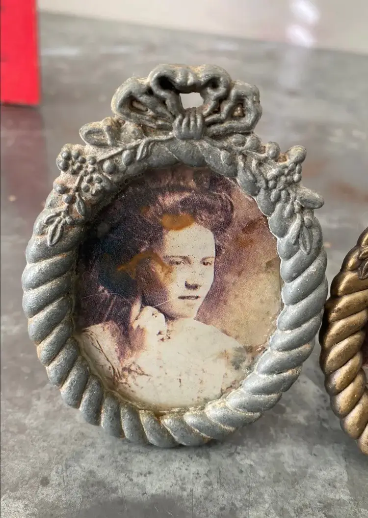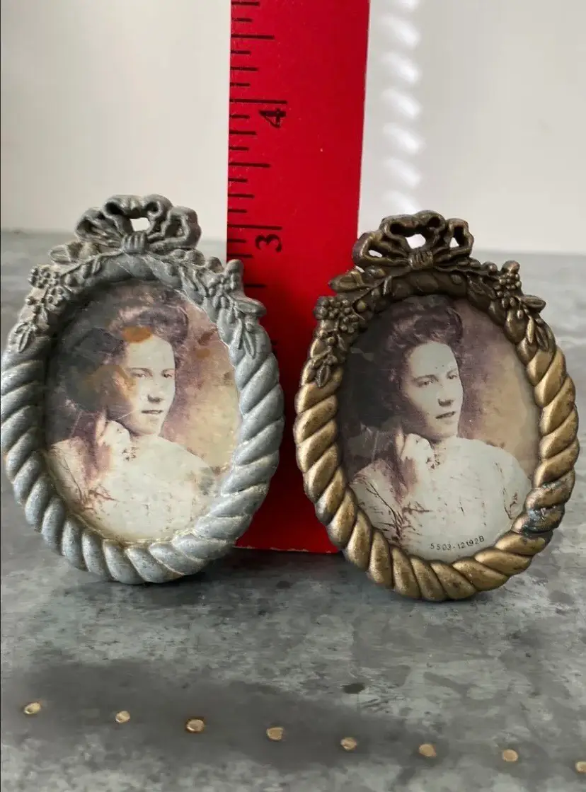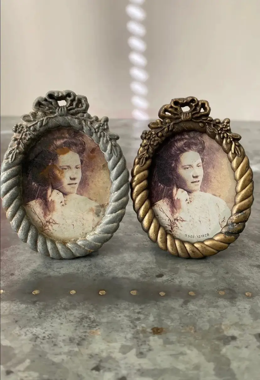 Silver frame has water damage to the back, lots of wear.