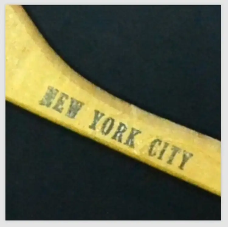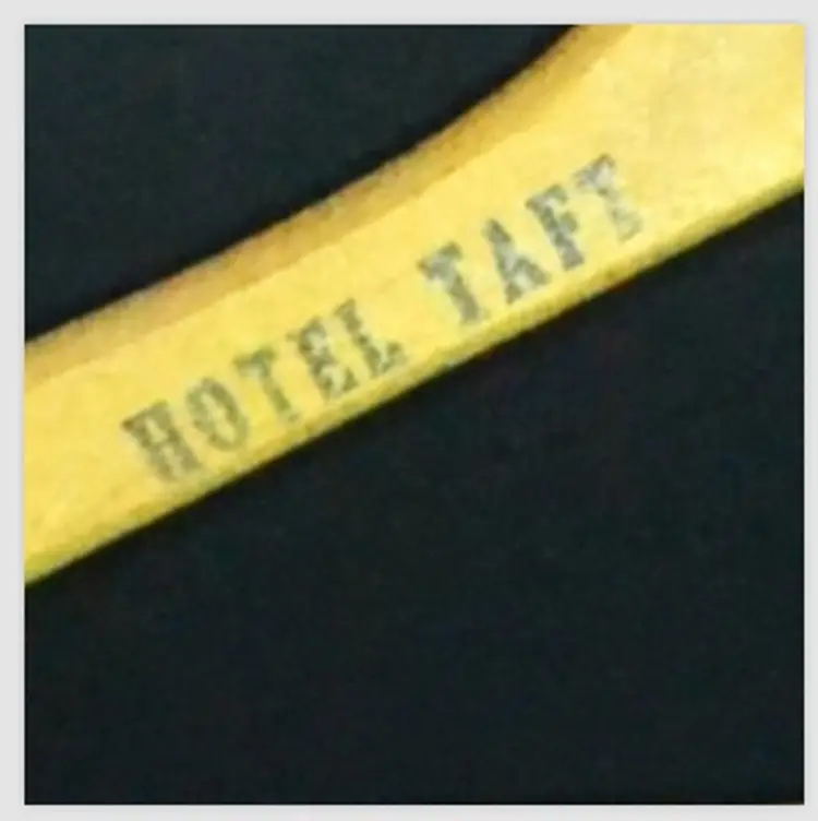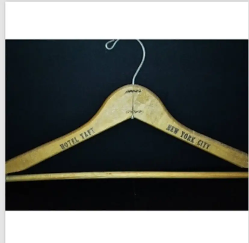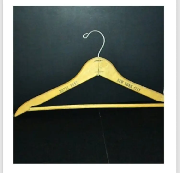 One is from the Taft Hotel in New York City. This one is circa mid-century. This hotel was a prominent midtown Manhattan location known for hosting jazz musicians, VIPs, and politicians. The building is still there today but is now the Michelangelo hotel and condominiums Executive Plaza. Who knows what famed musician or VIP this hanger once held the clothes for!