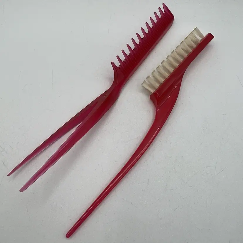 Set Vintage Adorn Hairspray Teasing Finishing Comb Brush Pink Lucite 6.5"
