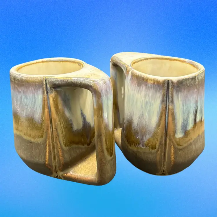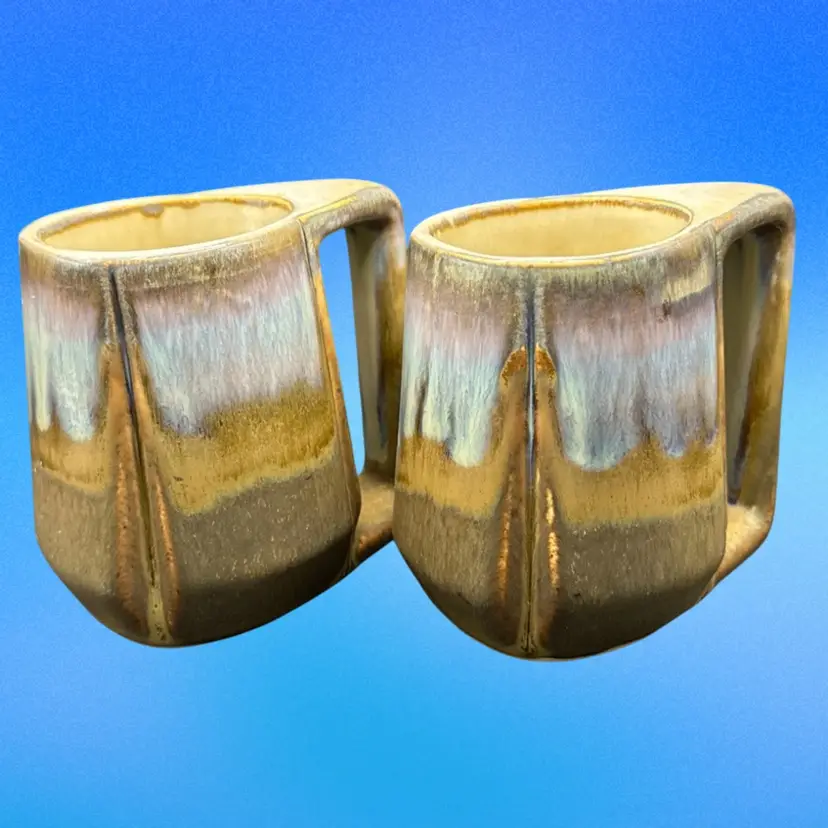 Set/2 Rodolfo Padilla Stoneware Pottery LightBlue Beige Ombré Coffee Mugs Signed From Mexico