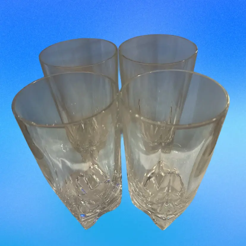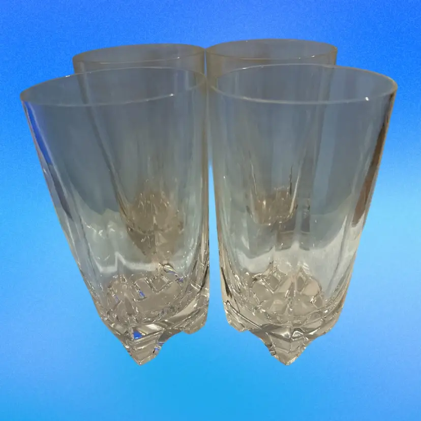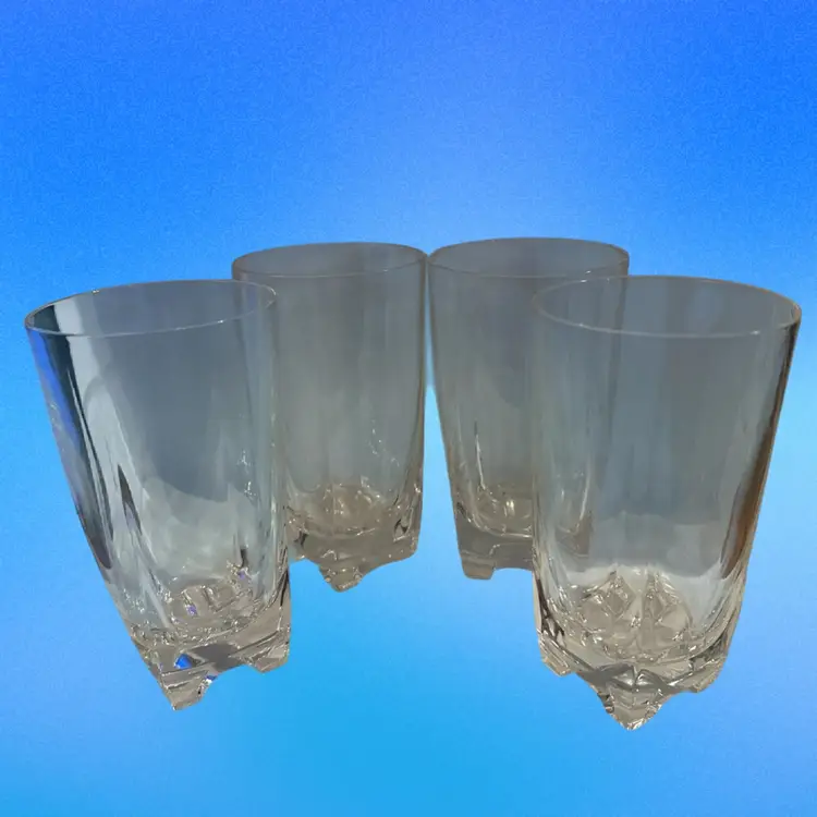 The Set(4) Tuscany Classics Executive Highball Glasses by Lenox are elegant and contemporary drinkware pieces perfect for all occasions. Made of crystal with a clear color and a round top with a 4 toe square base, these highball glasses have a capacity of 15 oz. and stand at 6 inches tall. The vintage glasses, manufactured in 2003, feature a blown glass production technique, making them not only stylish but also unique in their design. With an item diameter of 3 3/8 inches and an item weight of 1 pound and 4 ounces each, these highball glasses are a sophisticated addition to any glassware collection.