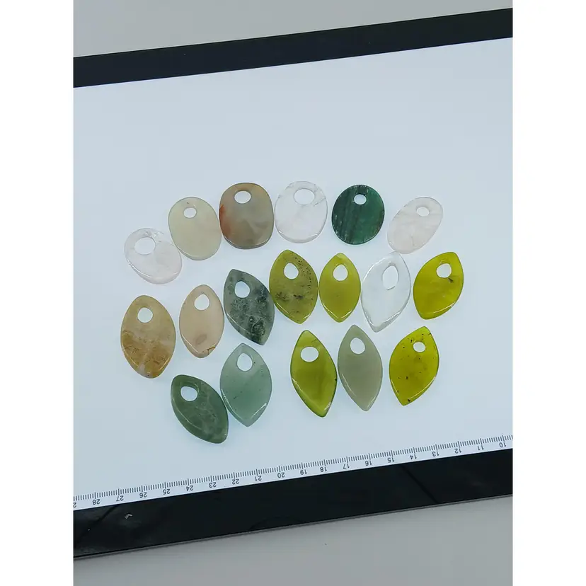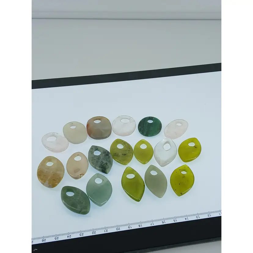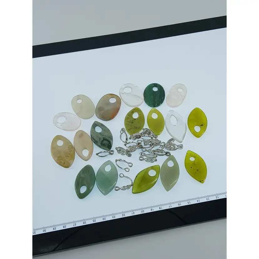 GSLot19 – Mixture of Gemstones that have silver plated bails with them. Stones measure approx. 15/16 x 1 5/8 x ¼ inches may be slightly smaller or larger, but all are very close. Stones range from Picture Jasper, Aventurine, Agate Quartz and jade weight 8 oz