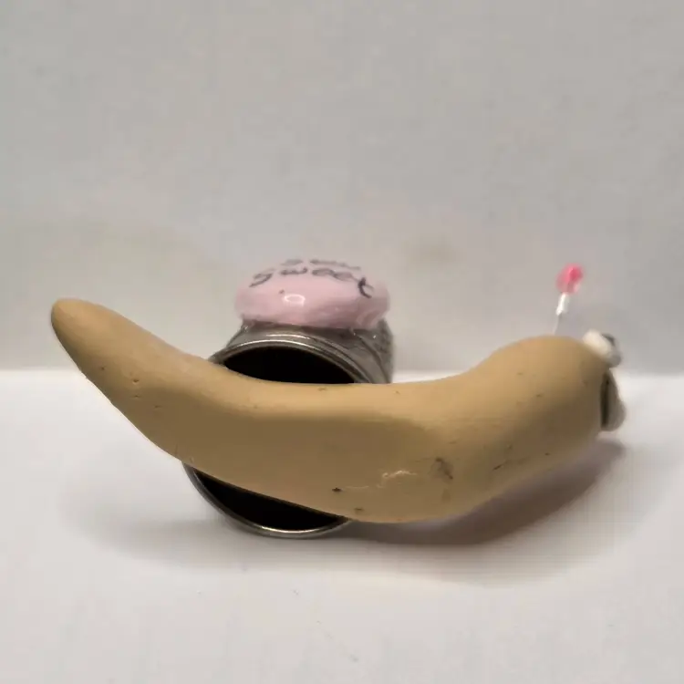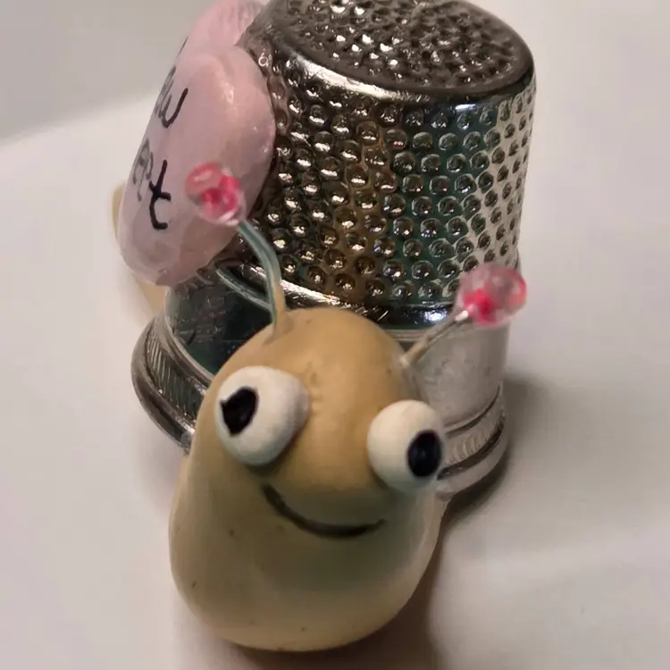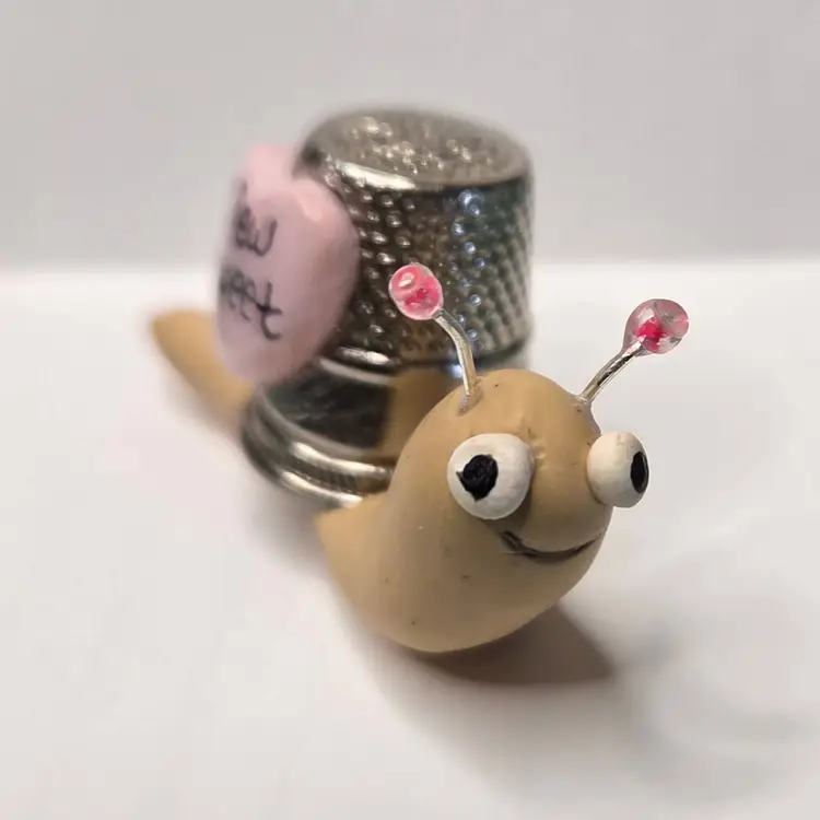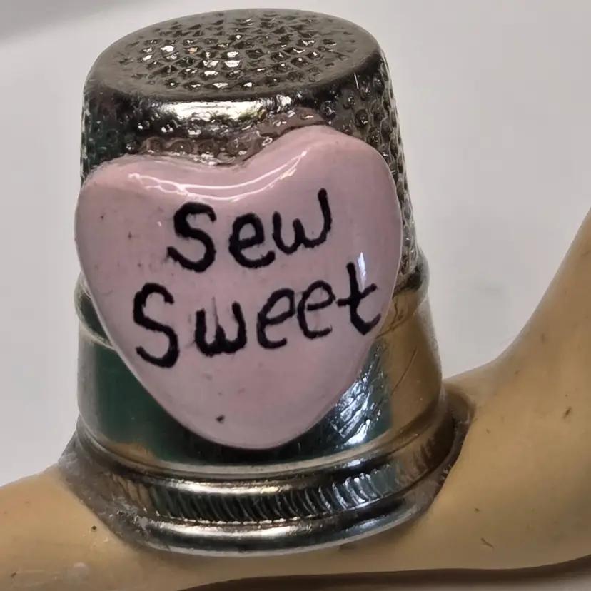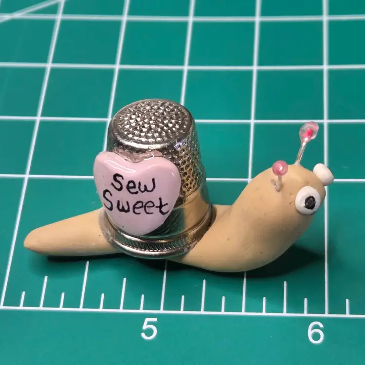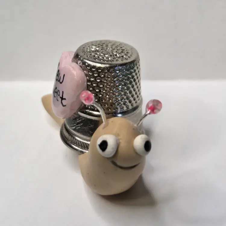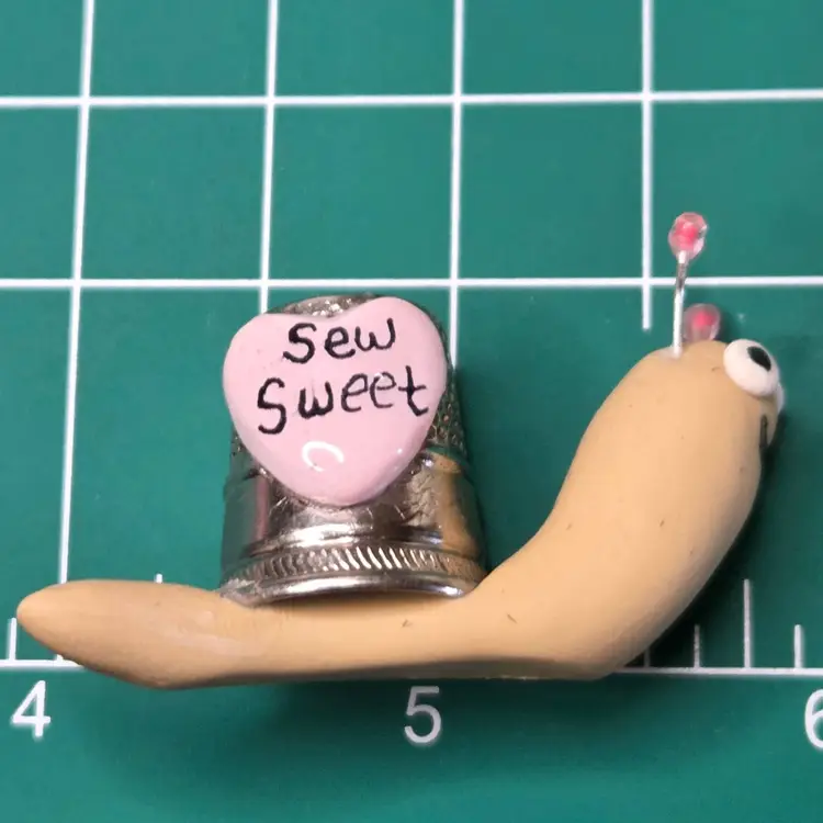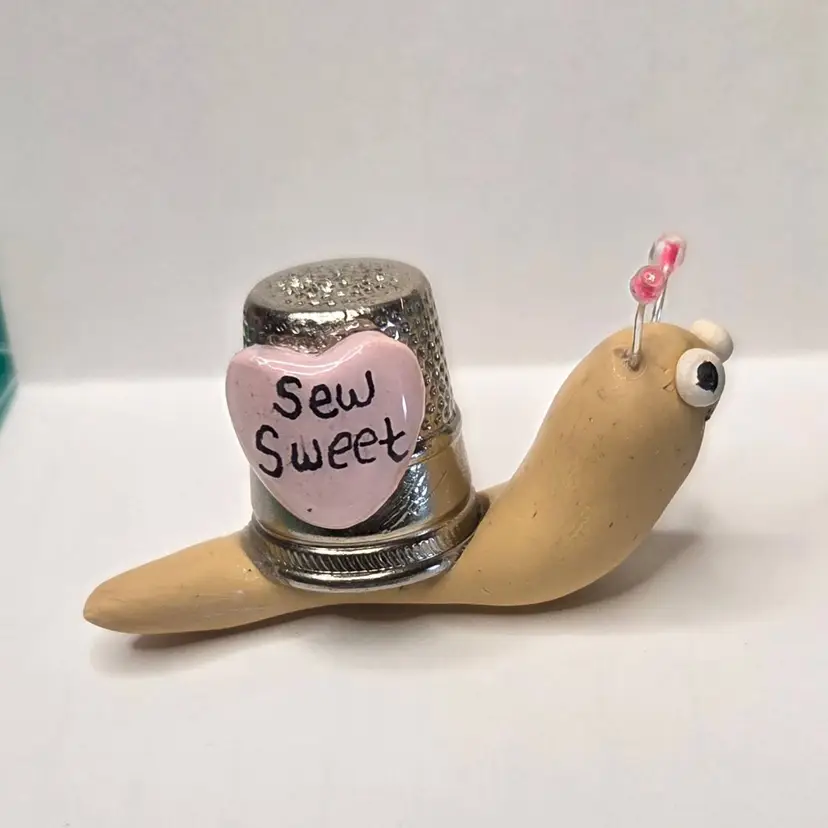 With a thimble on its back it is the perfect trinket or gift for someone who loves to sew. The antennae are made from seed beads and the "sew sweet" heart is made from polymer clay and resin.