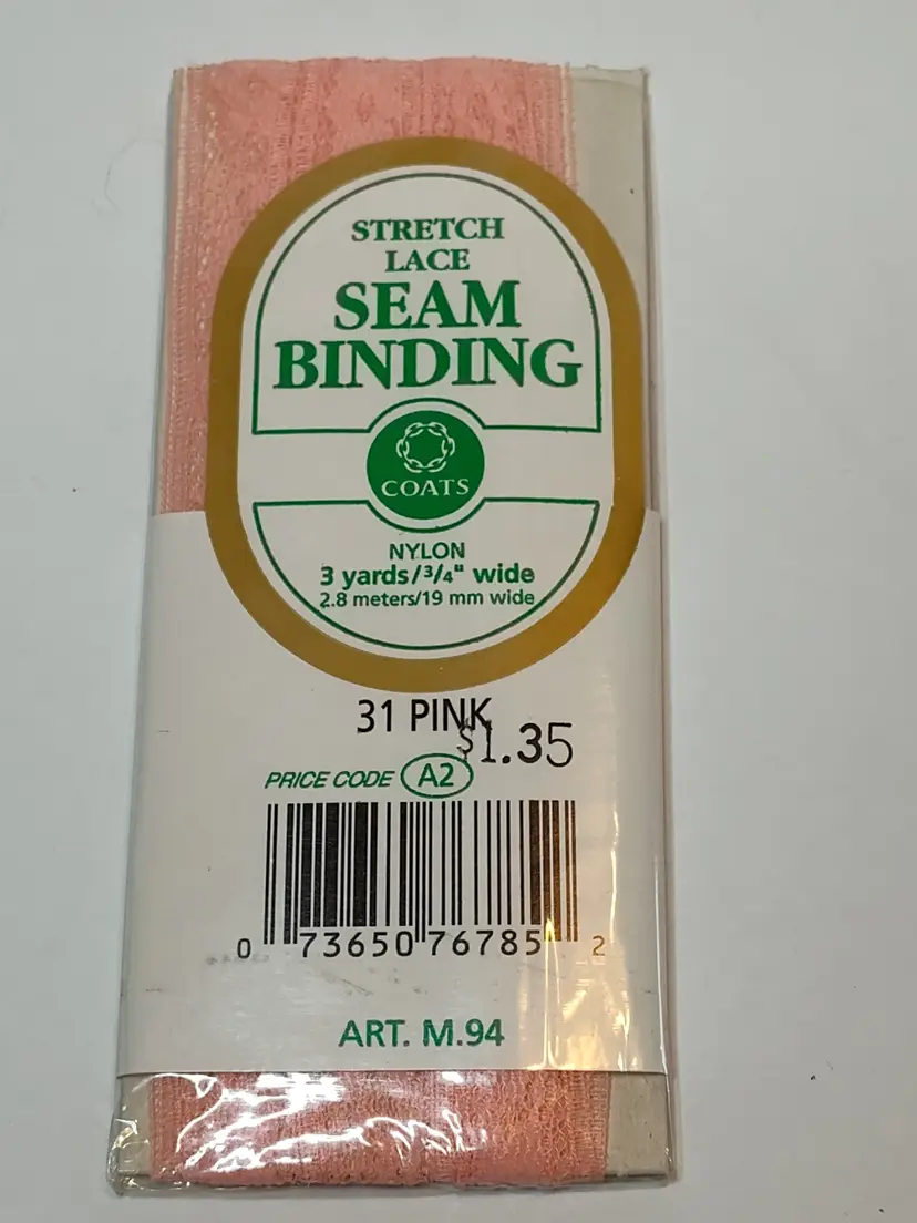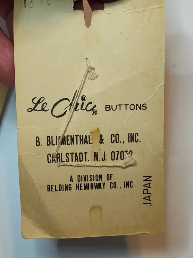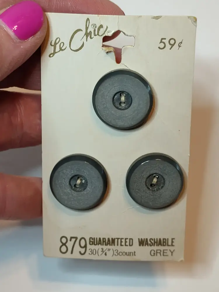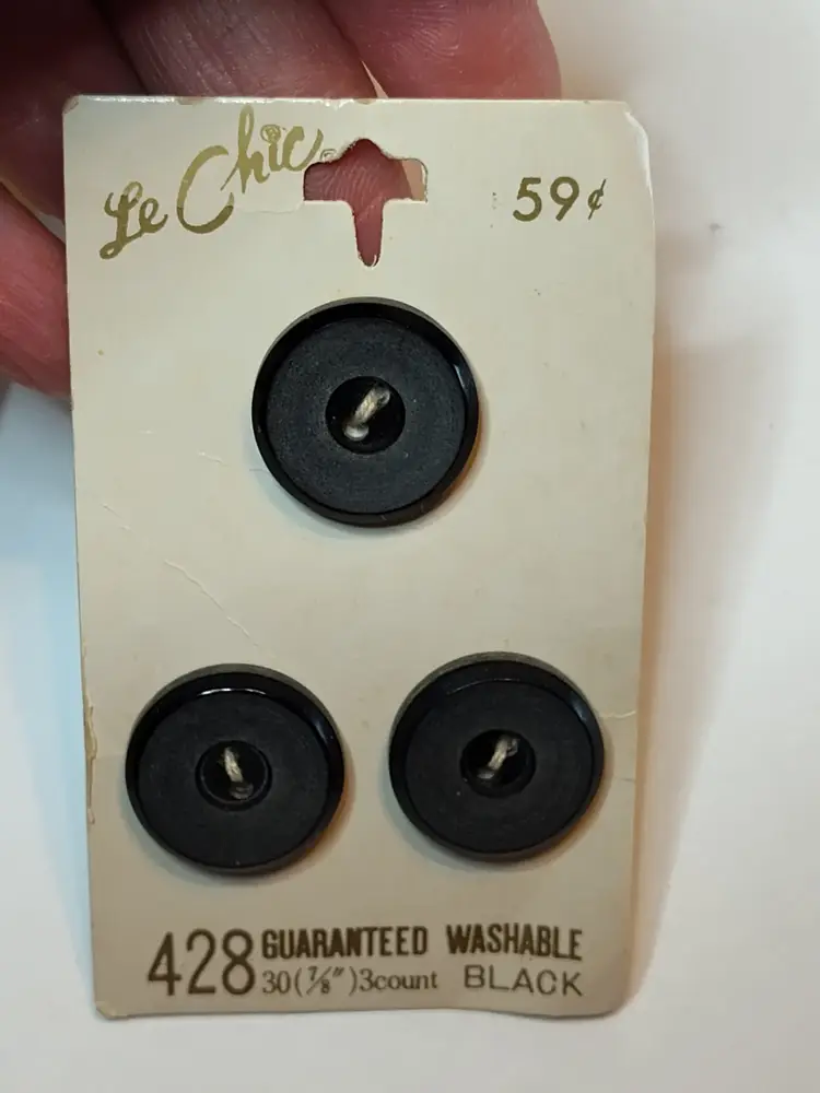3 Buttons on each card Le Chic- grey, brown & black - made in Japan 1 Double Fold Quilt Binding- white #030 (1986) 1 Stretch Lace Seam Binding-pink #31 for coats