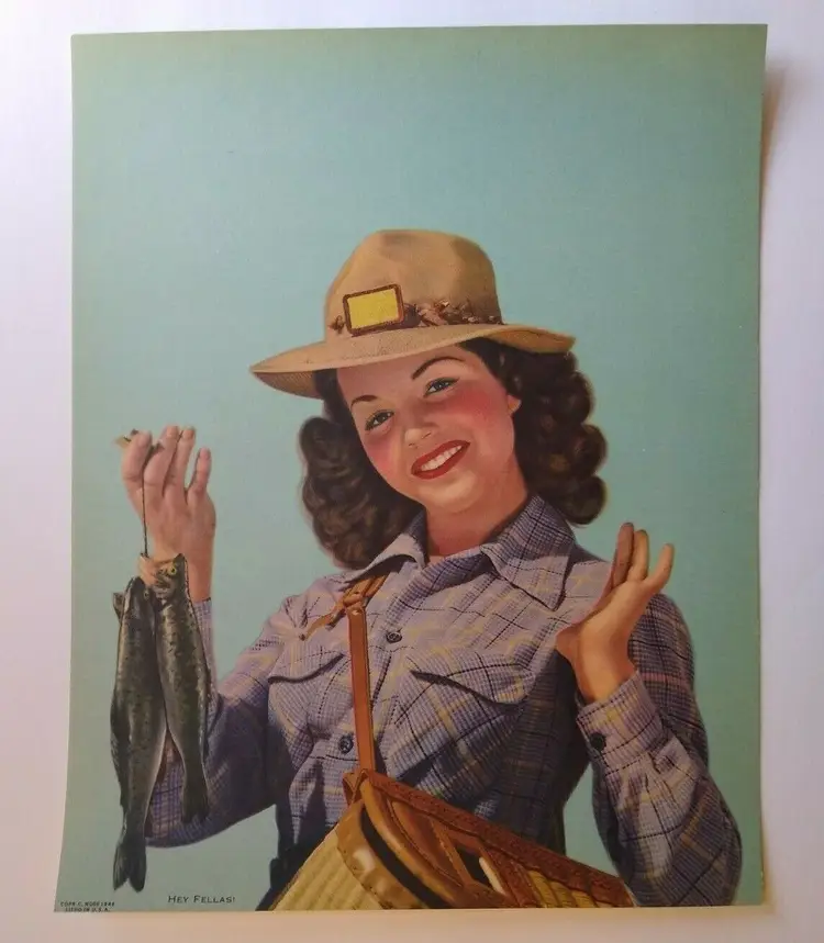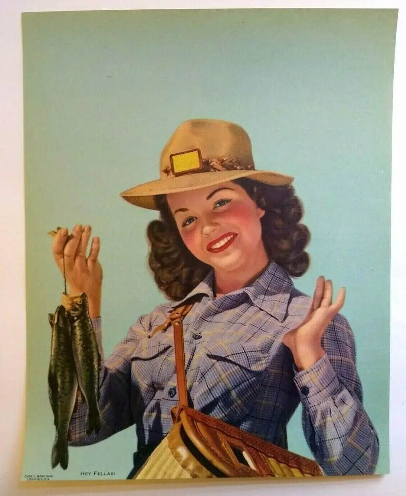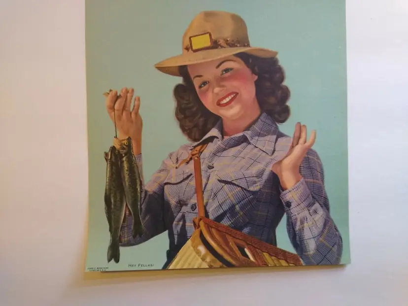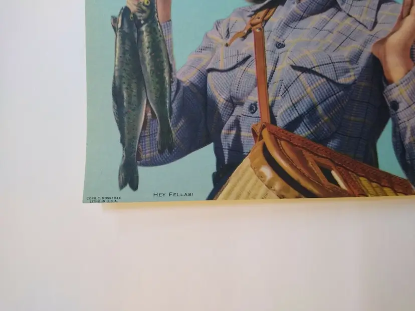 Vintage unused art print. Size is 8" X 10". Amazing new old stock condition. The title on bottom is "Hey Fellas". C. Moss 1946 USA printed on bottom with item number 6425. Great color.