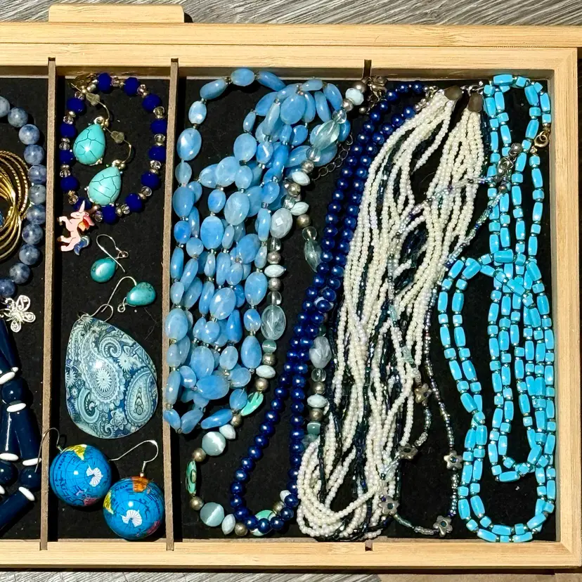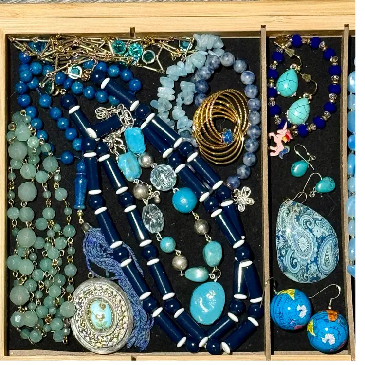20 pcs: 10 necklaces 4 earrings 3 bracelets 1 brooch 1 locket 1 glass beaded tassel (idk what it is!)