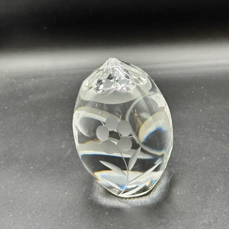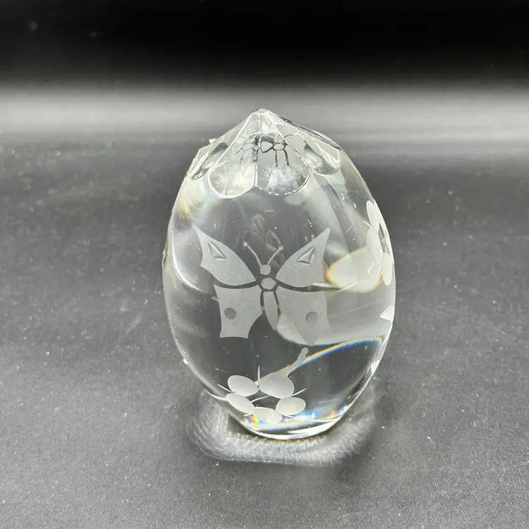 Shannon Ireland Clear Crystal Egg Shaped Paperweight With Flowers & Butterflies