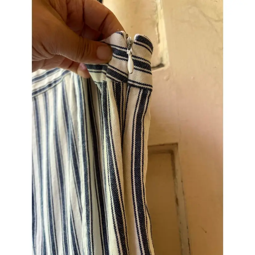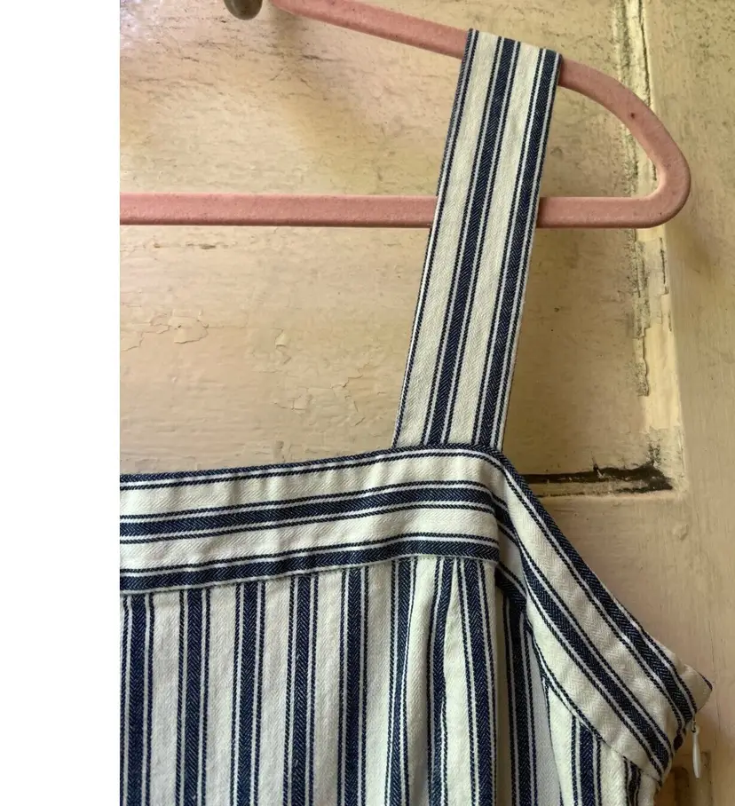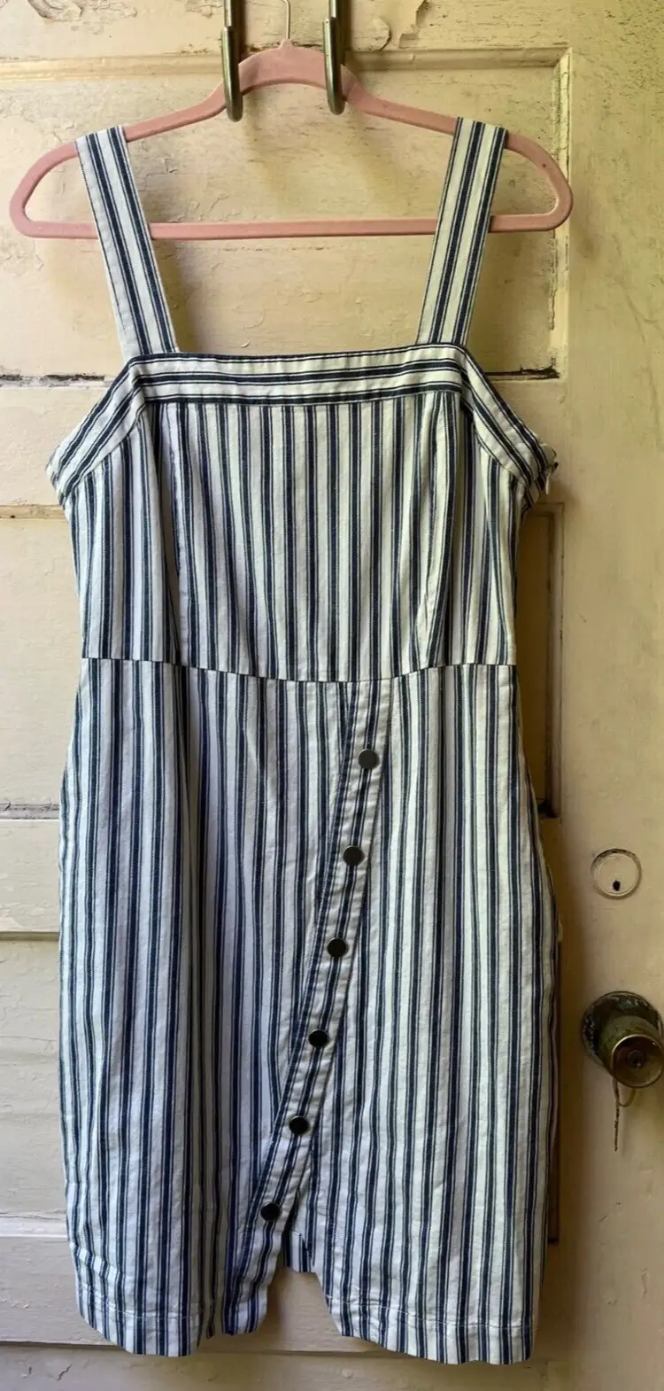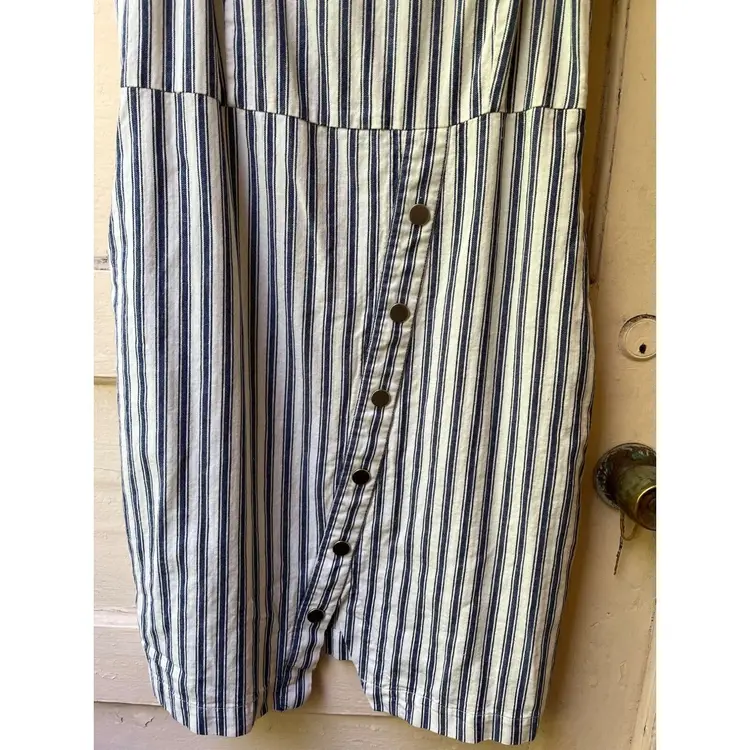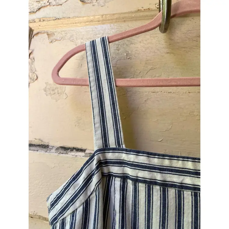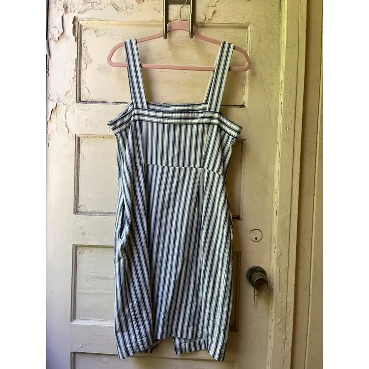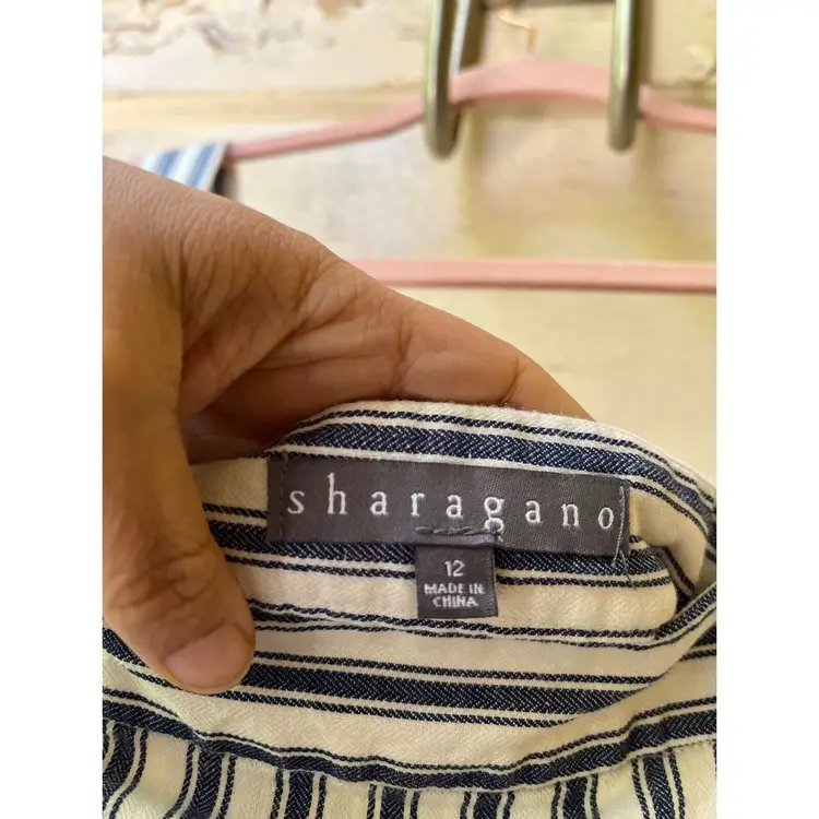 Pattern: Striped Sleeve Length: Sleeveless Closure: Zip Size: 12 Color: Blue Material: Cotton, Linen Dress Length: Knee Length Brand: Sharagano Size Type: Regular Department: Women Theme: Nautical Style: Maxi Season: Summer