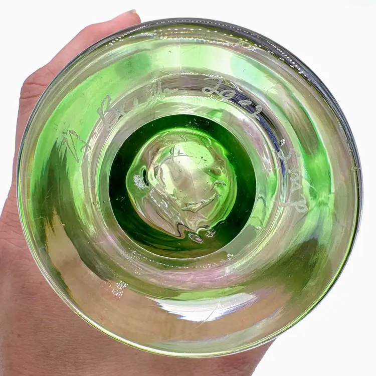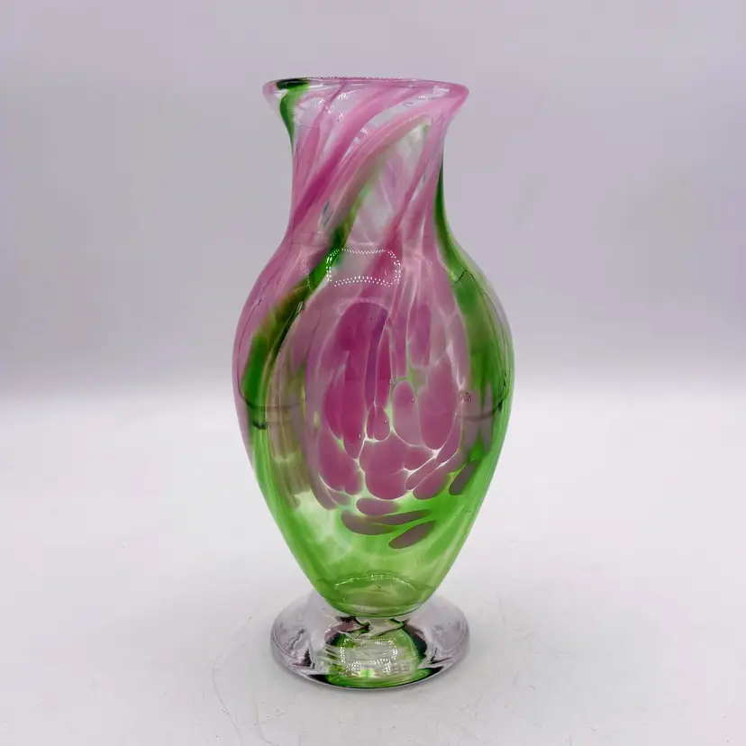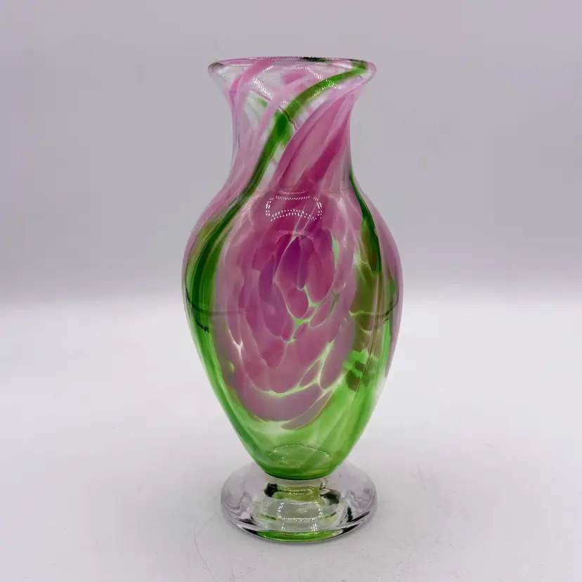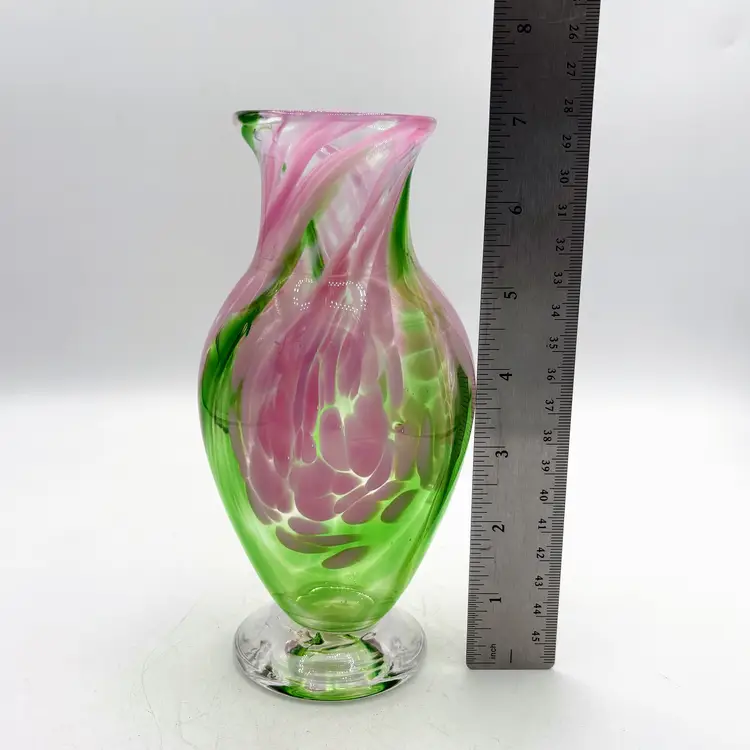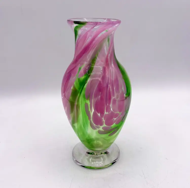 Condition - Pre Owned Origin - Georgia Antique - No Signed By - A Bush SMP Year Manufactured - 2002 Vintage - Yes Item Height - 7 in Style - Contemporary Studio Art Glass Features - Decorative, Hand Blown Production Style - Art Glass Handmade - Yes Pattern - Abstract Signed - Yes Color - Pink White Green Clear Material - Glass Subject - Abstract Art Brand - Stone Mountain Park Type - Footed Vase Era - 21st Century (2000-Now) Packaging - Unboxed Time Period Manufactured - 2000-2009 Production Technique - Hand Blown Glass Country/Region of Manufacture - United States Backstamp - Incised Item Weight - 1 lb 4.1 oz Product Line - Studio Art Glass