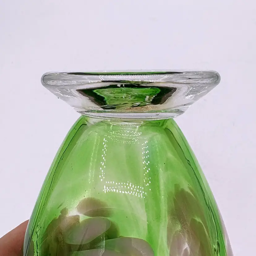 This gorgeous cottagecore/farmhouse chic vintage decorative hand blown studio art glass vase would make a lovely addition to any collection or the perfect gift for the favorite collector in your life! The item for purchase is in excellent pre-owned condition and shows no/minimal signs of use or wear. The item listed is damage free and has no chips, cracks, stains or deep scratching.