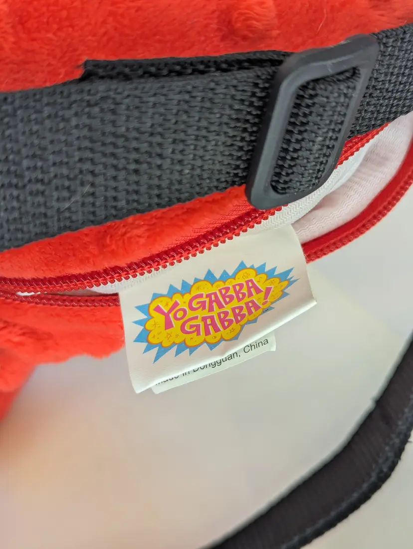 Yo Gabba Gabba Muno 17" Red Plush Zippered Backpack Nickelodeon Journeys Kidz - This backpack is in very good condition. It has light wear, no stains, rips, tears or holes. Zipper is metal and works as it should. Clean on the inside. Straps are adjustable. Light wear/marks/scuffs on eye - See all photos Item comes from a smoke free, pet friendly home.