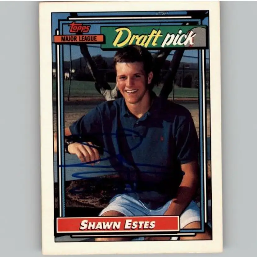 Authentic Topps Major League Draft Pick baseball card featuring Shawn Estes, signed in blue Sharpie. A great addition for fans of Shawn Estes and collectors of autographed baseball cards. Your purchase supports Signatures For Soldiers in helping homeless and disabled veterans.