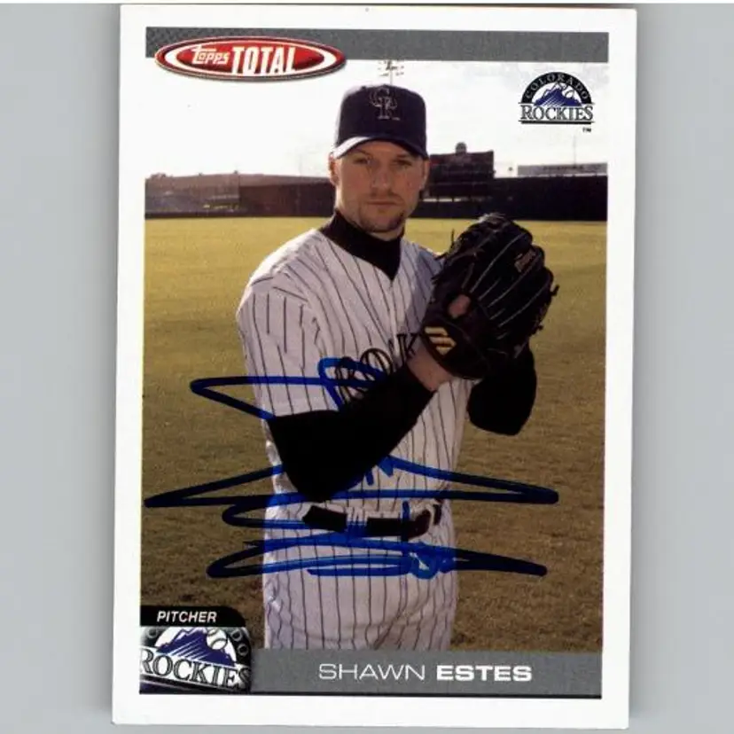 Authentic 2004 Topps Total baseball card featuring Shawn Estes of the Colorado Rockies, signed boldly in blue Sharpie. A great addition for Rockies fans and autograph collectors. Your purchase supports Signatures For Soldiers in helping homeless and disabled veterans.