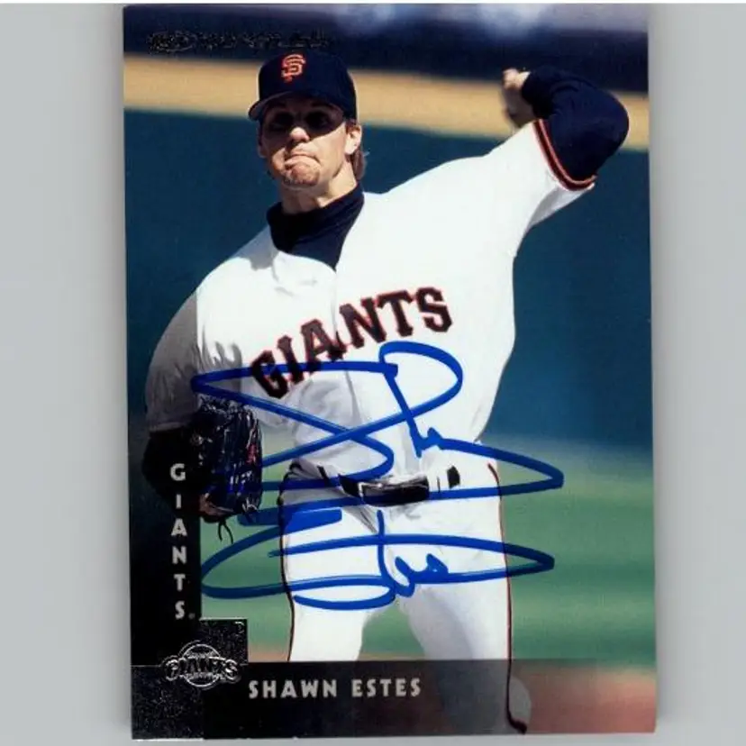 Authentic Donruss baseball card featuring Shawn Estes of the San Francisco Giants, signed boldly in blue Sharpie. A must-have for Giants fans and autograph collectors. Your purchase supports Signatures For Soldiers in aiding homeless and disabled veterans.