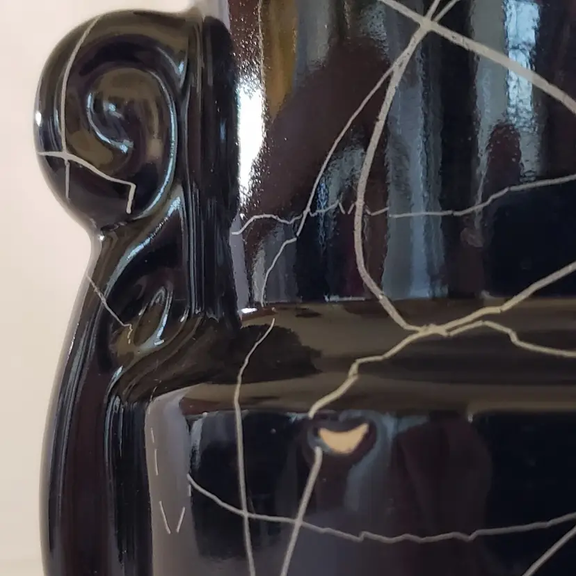 Brand: Shawnee Type: Vase Shape: Abstract Item Height: 8 1/4" Color: Black/Silver Material: Ceramic Production Style: Art Pottery Production Technique: Pottery Country/Region of Manufacture: United States
