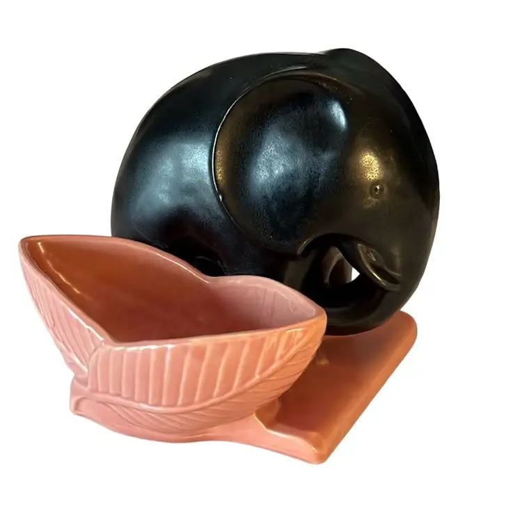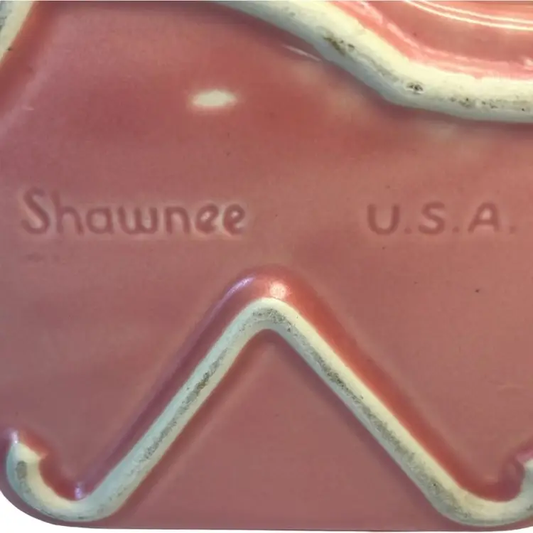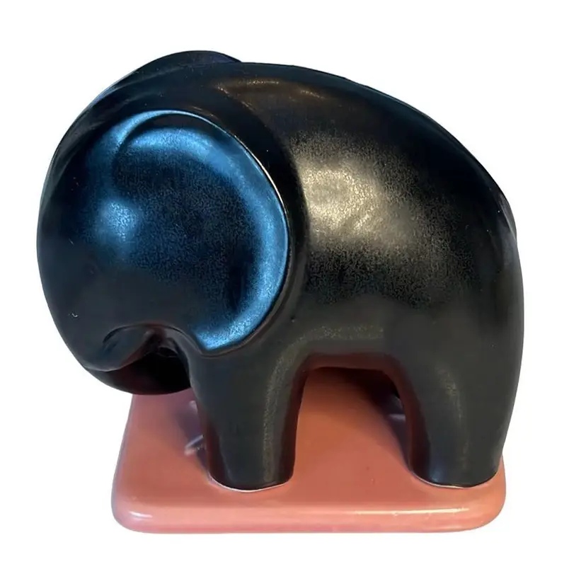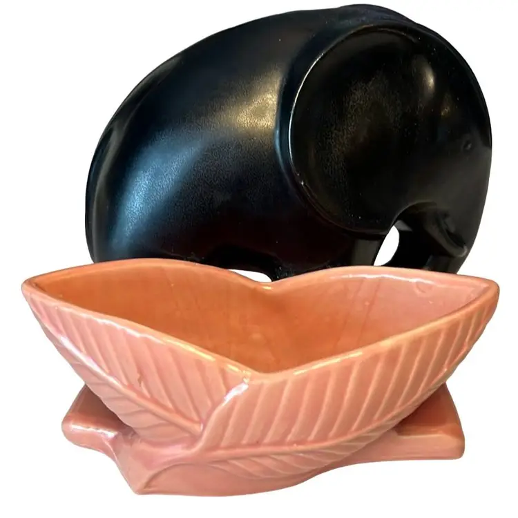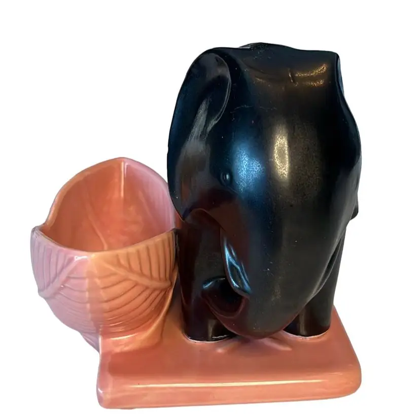 Perfect for a spring mid-century style! Black & pink colors, elephant 🐘 and palm leaves πŸ’— This Shawnee USA is hard to find.