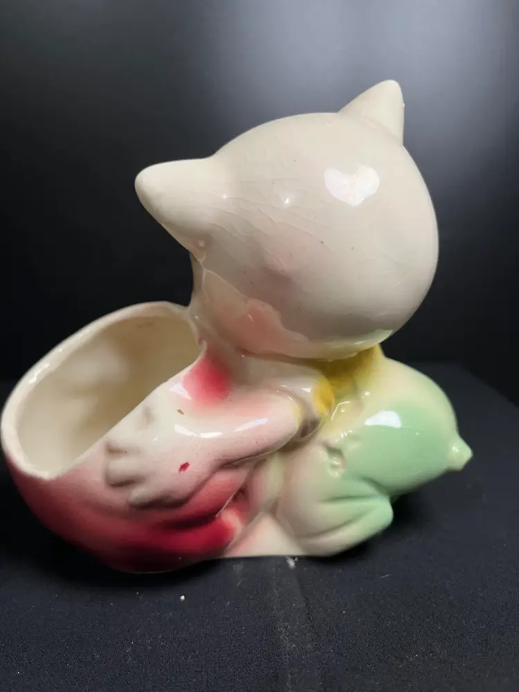 Crazing. No chips or cracks. No paint wear. Is in really good vintage condition. Measures approx 5.5" H, 5.25" L, 14.9 Oz