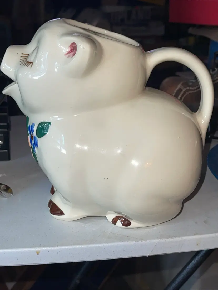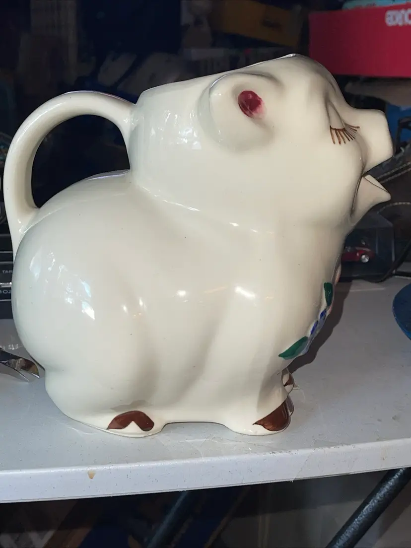 This item is perfect for collectors and enthusiasts of vintage decorative cookware, dinnerware, and serveware. The pitcher is in excellent condition and will make a great addition to any collection. Don't miss out on the opportunity to own this original Shawnee Smiley Pig milk pitcher.