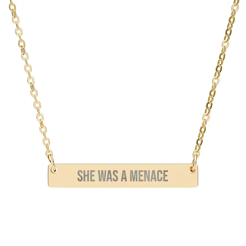 She Was A Menace Horizontal Bar Necklace, Engraved