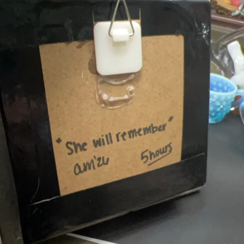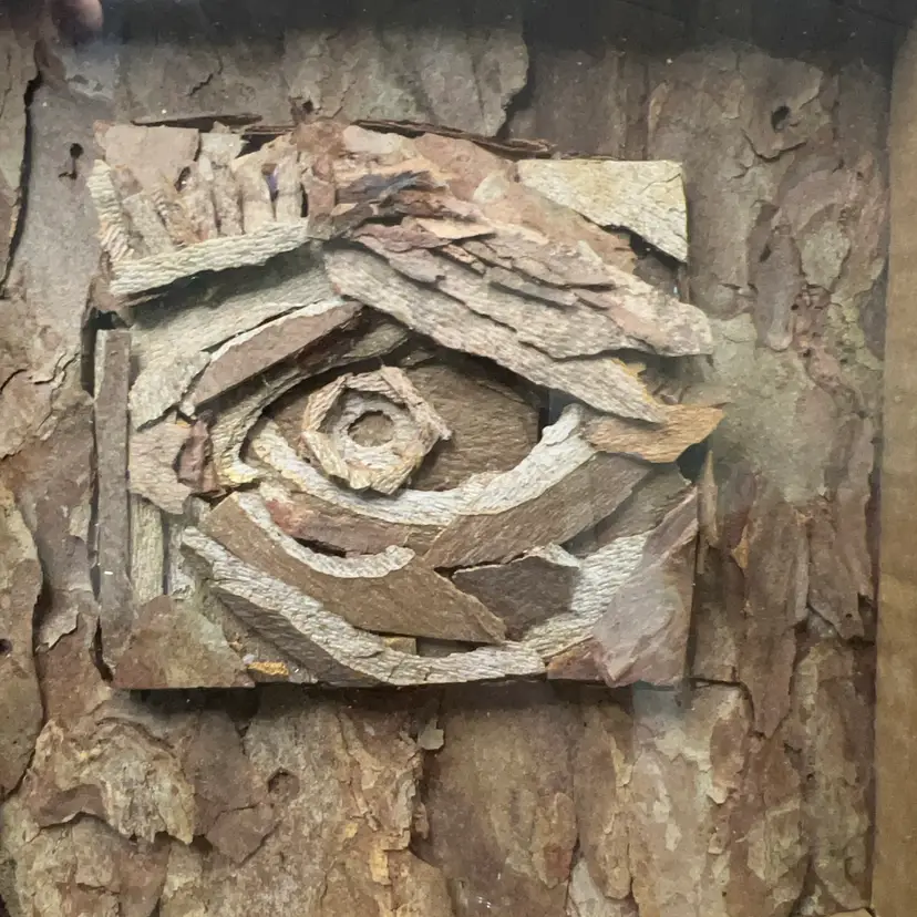 “She Will Remember “ , 3D Art Signed Framed Work. Tree Bark And Paper Mixed Media. 7” Frame.