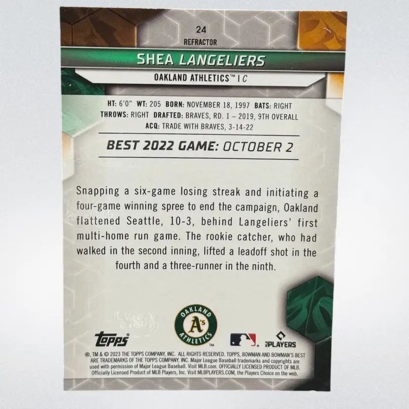 Shea Langeliers 2023 Bowman's Best Rookie Refractor #24 Athletic + RC A's Lot