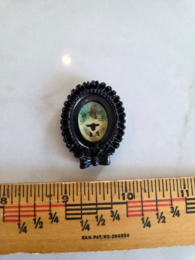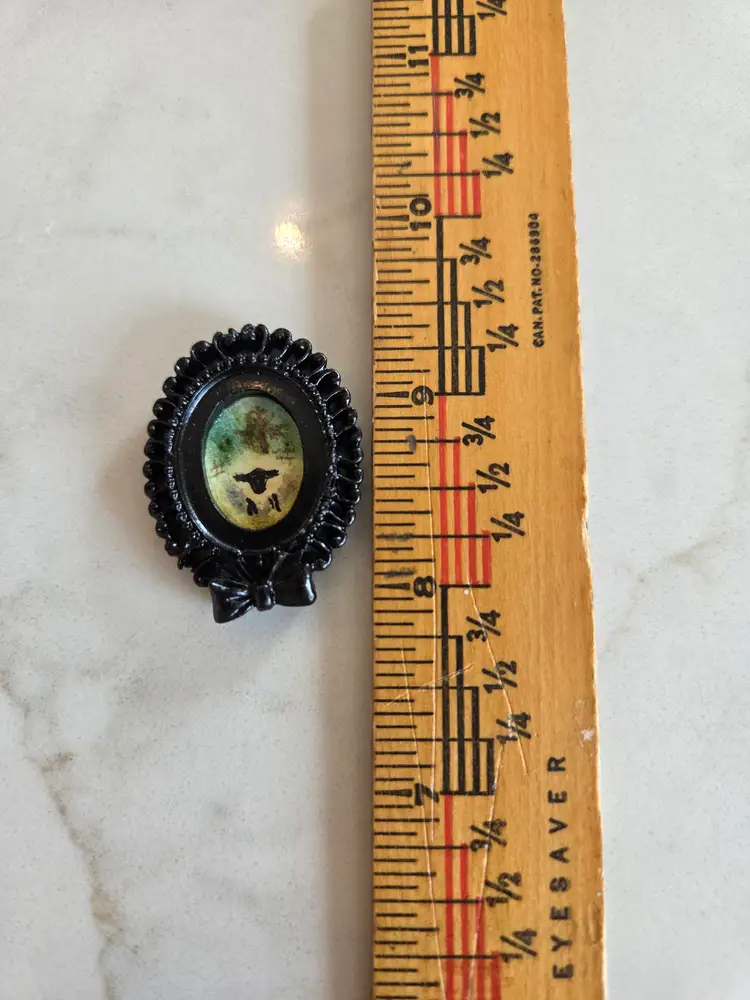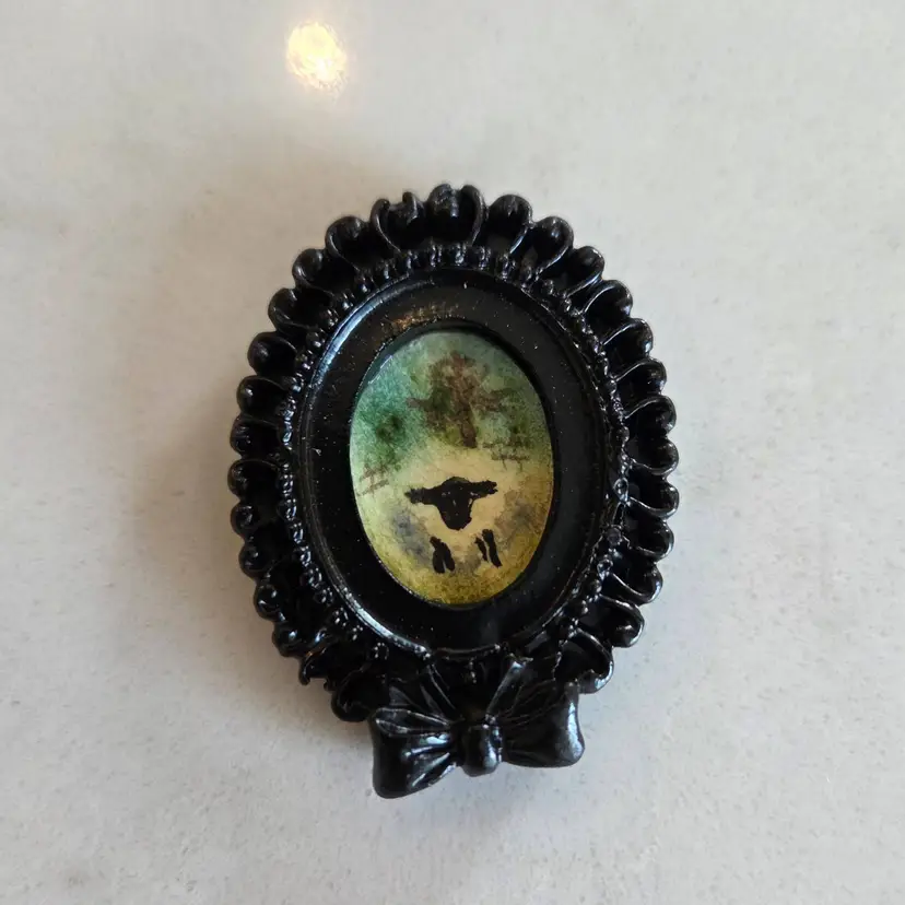 Original watercolor miniature painting. Black frame and Neodymium magnet on back. Painting front protected by cold wax.