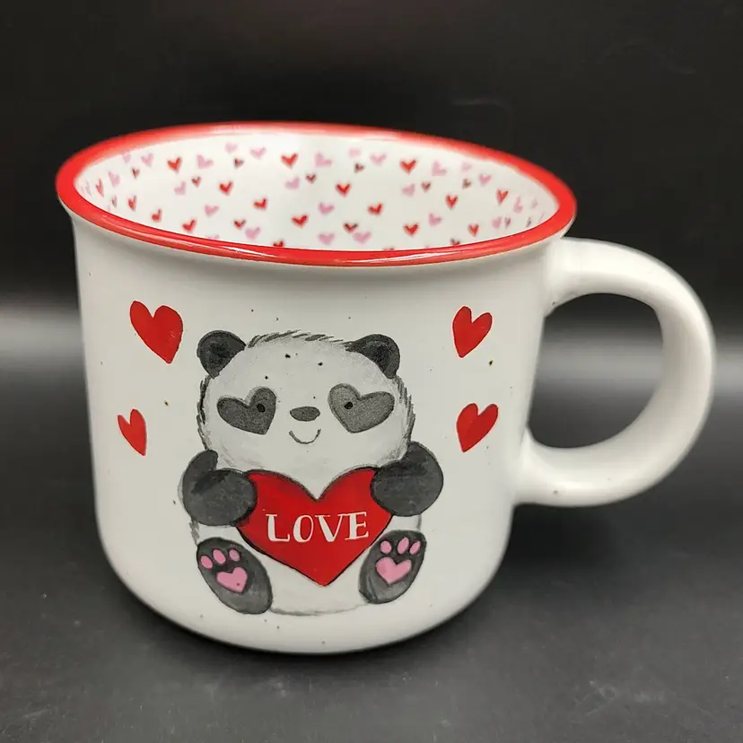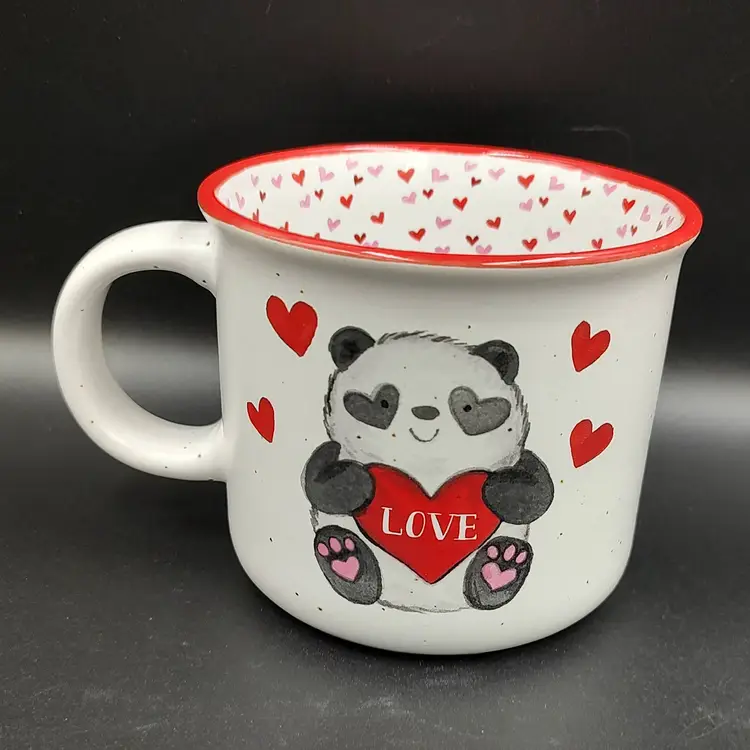 2022 Sheffield Home Ceramic Panda Bear Love Coffee Mug. Height 3.5" x diameter 4". Holds 16 ounces. Made in China