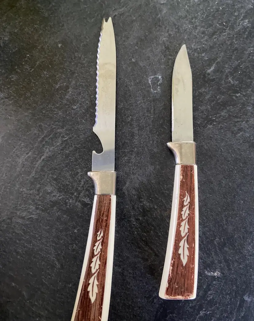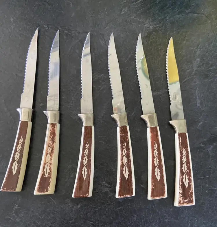 See wear in photos. All knives in photos included. Vintage original Sheffield knives