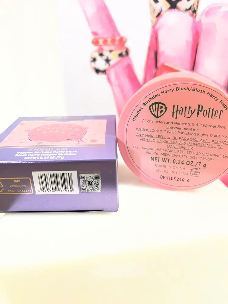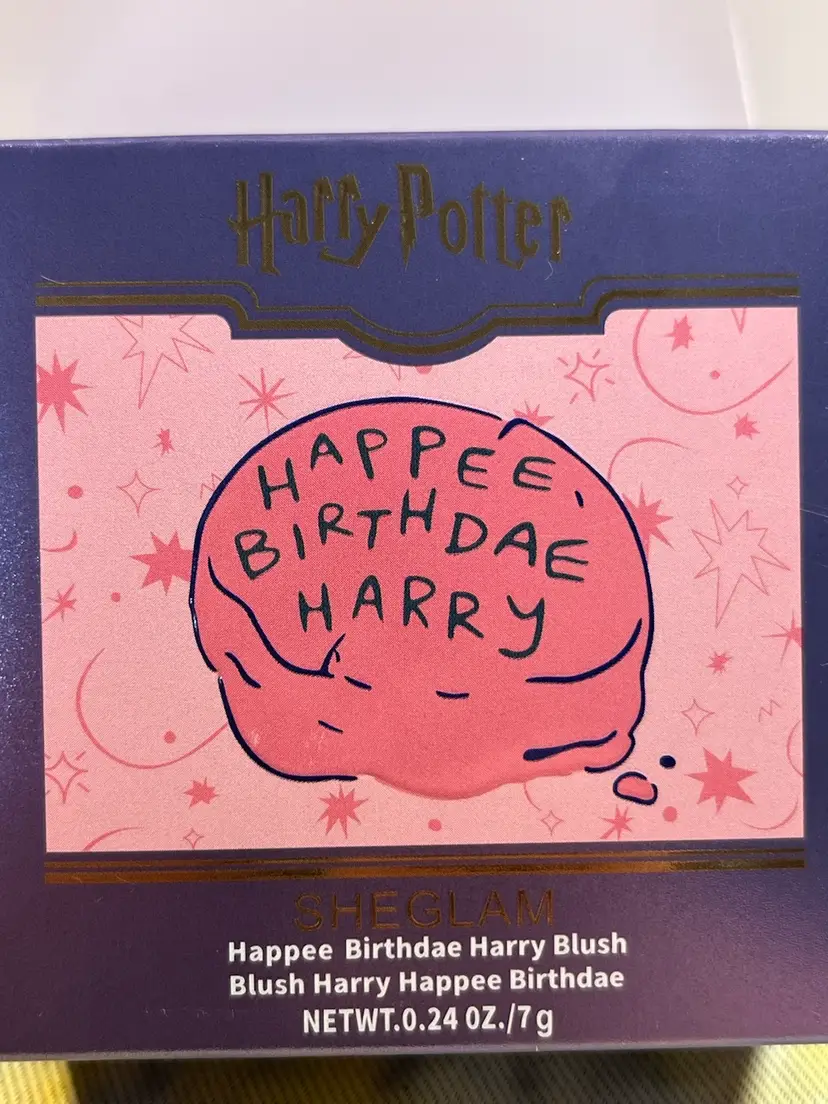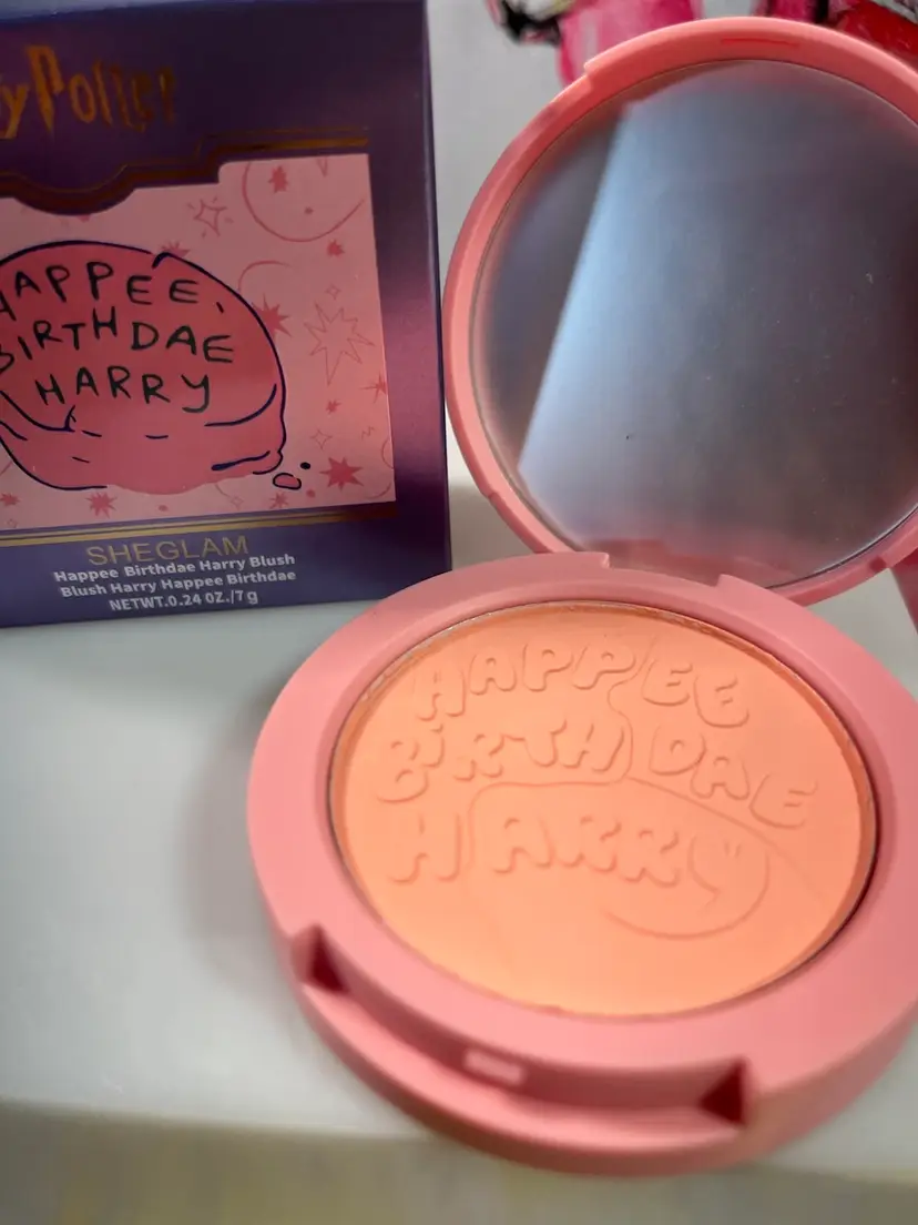 • Shade: A flattering, rosy pink hue designed to give cheeks a soft, natural glow. • Formula: Features a smooth, buildable, and non-fading formula that stays on for a long-lasting finish. • Texture: Pressed powder with a creamy application. • Attributes: 100% Vegan, Cruelty-Free, and Gluten-Free. • Size: Full size (0.24 oz / 7g). • Packaging: Collector-quality compact featuring the "Happee Birthdae Harry" cake design with green "icing" lettering. Condition: Brand New in Box (NIB), never used or swatched.