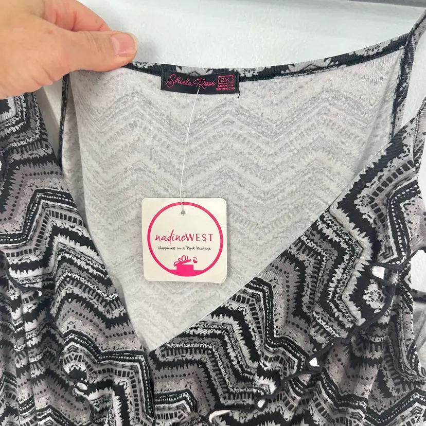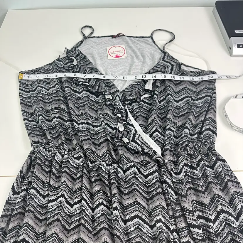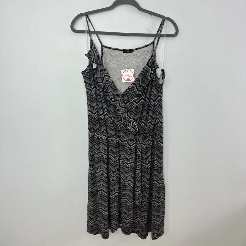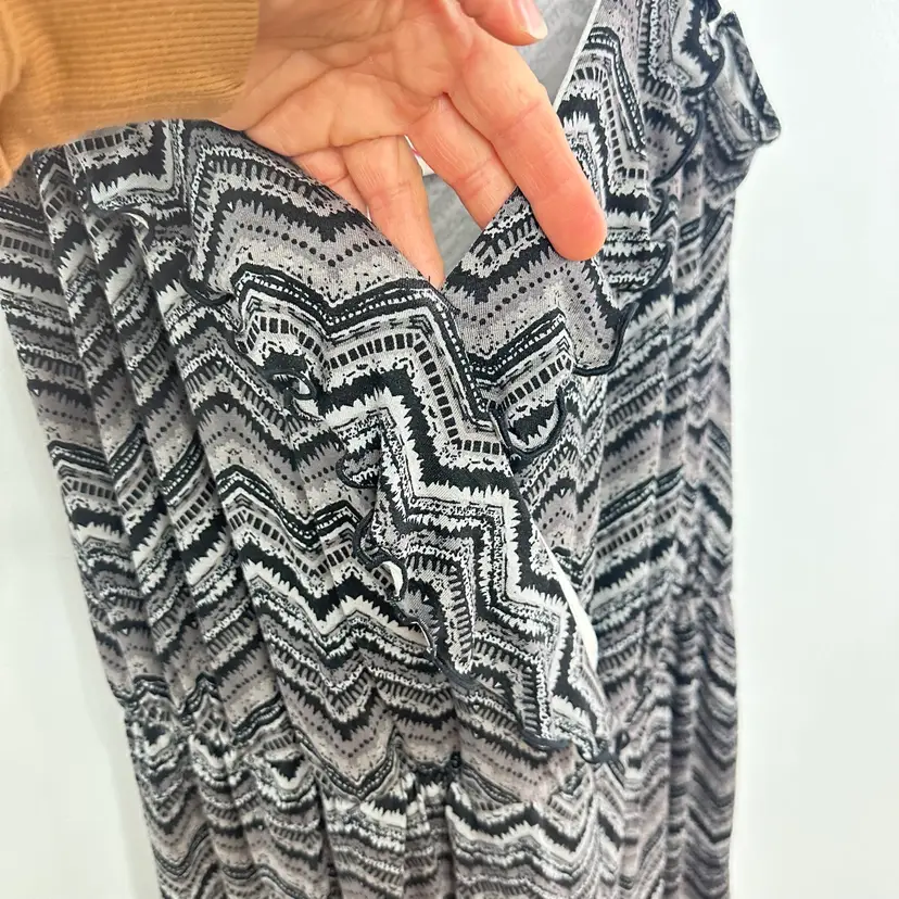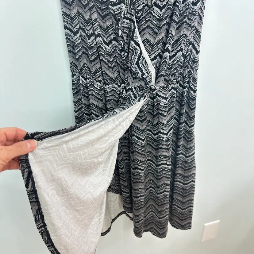 Sheila Rose Gray & Black Midi Wrap Spaghetti Strap Dress