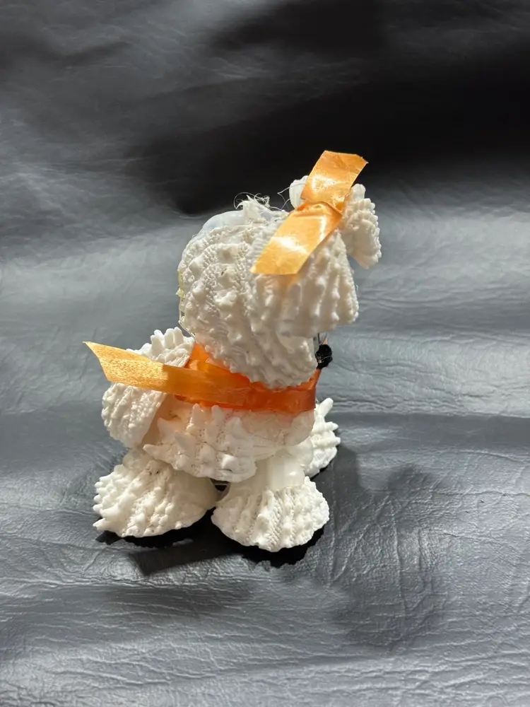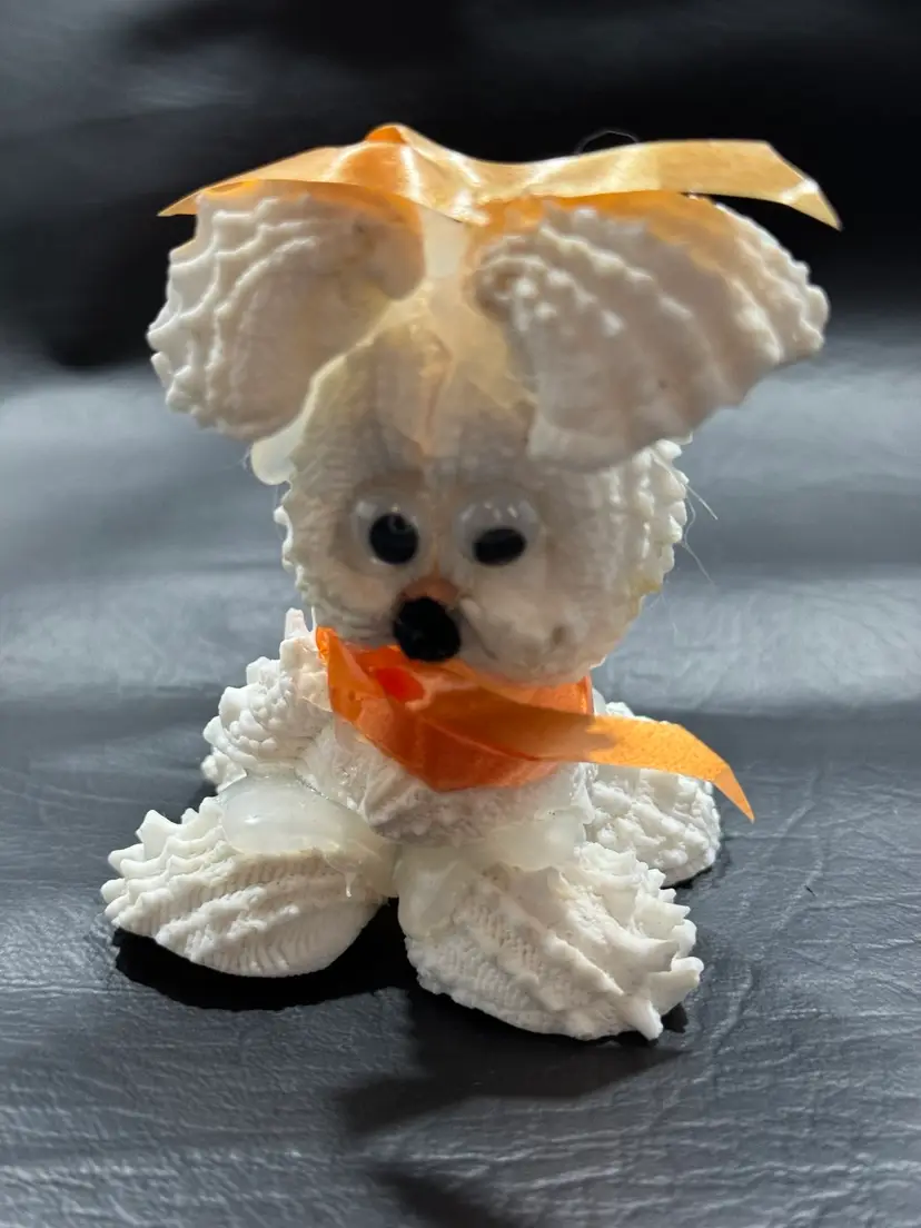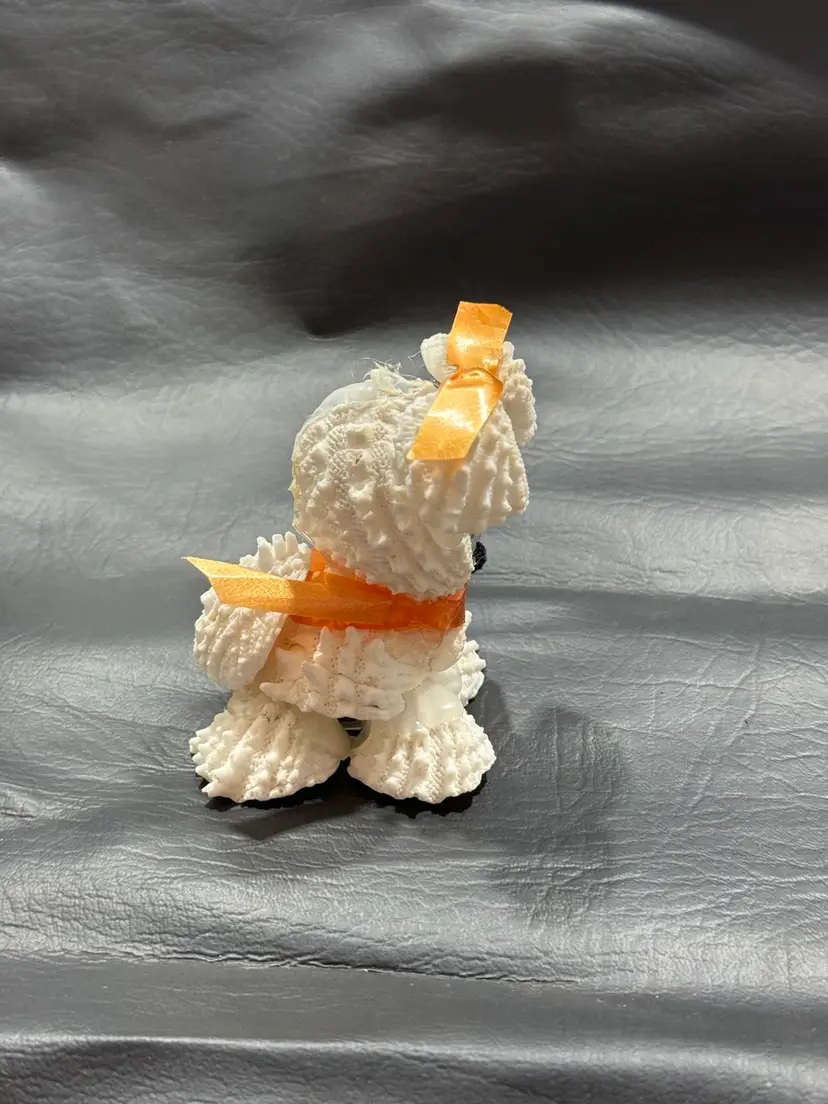 Cute shell art hand made puppy dog. Approximately 2.5 inches long.