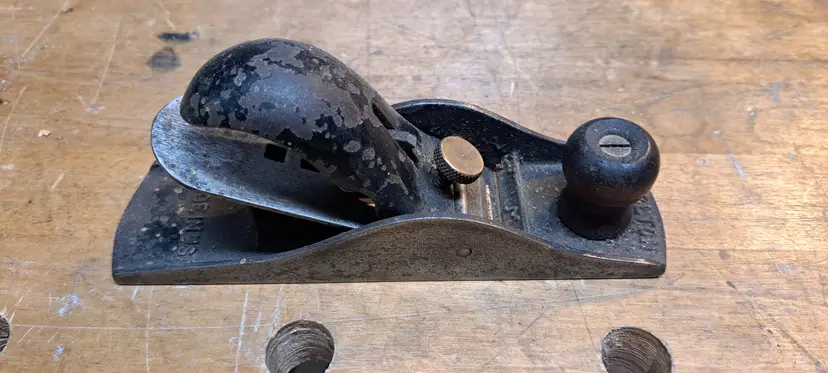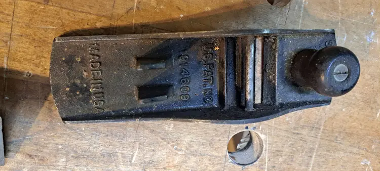 Shelton #12 Block plane. Both had the end of there iron adjuster broken, but you still can adjust the iron. I believe this is a common issue with these adjusters. Patten # 1914609 in the body.
