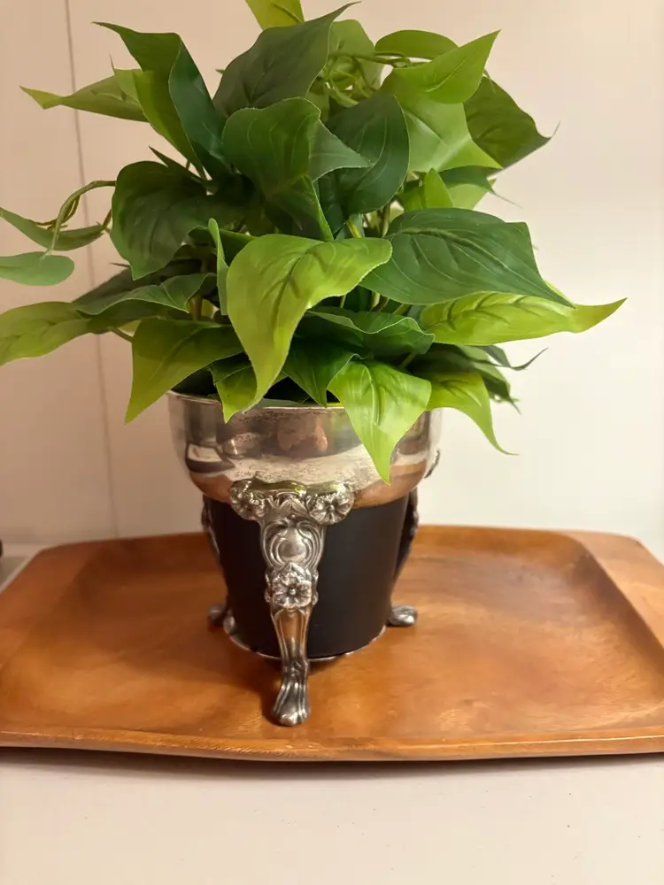 Ideal for keeping food warm during dinner parties or special occasions, this stand is a must-have for any host or hostess. With its sturdy construction and timeless style, it is sure to be a cherished heirloom for generations to come. Add it to your collection of collectibles or use it to impress your guests at your next event. Great for a plant stand as shown in the photo.