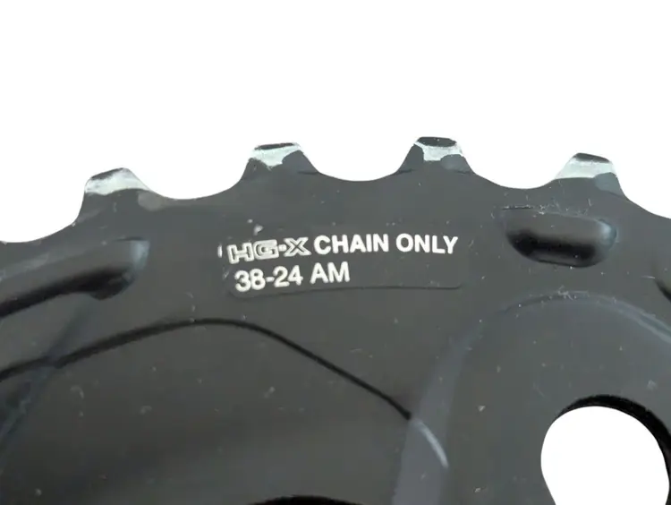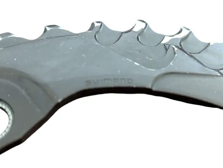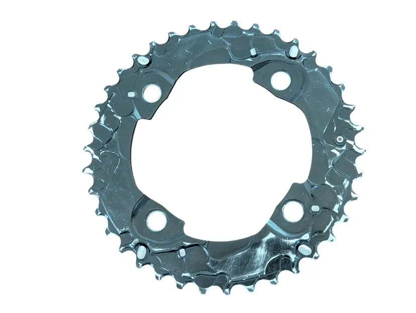The SHIMANO Deore FC-M615 Front Chainwheel is a high-quality aluminum chainring designed for mountain bikes. With a 4-arm mounting type and 110mm distance between bolt holes, this chainring is durable and easy to install. The black color and sleek design add a stylish touch to your bike. The 38 tooth chainring and 10-speed compatibility ensure smooth and efficient gear shifting, perfect for off-road adventures. With a weight of only 12 oz, this chainring is lightweight yet sturdy for long-lasting performance on your rides. I was told that this is used but certainly looks new to me.